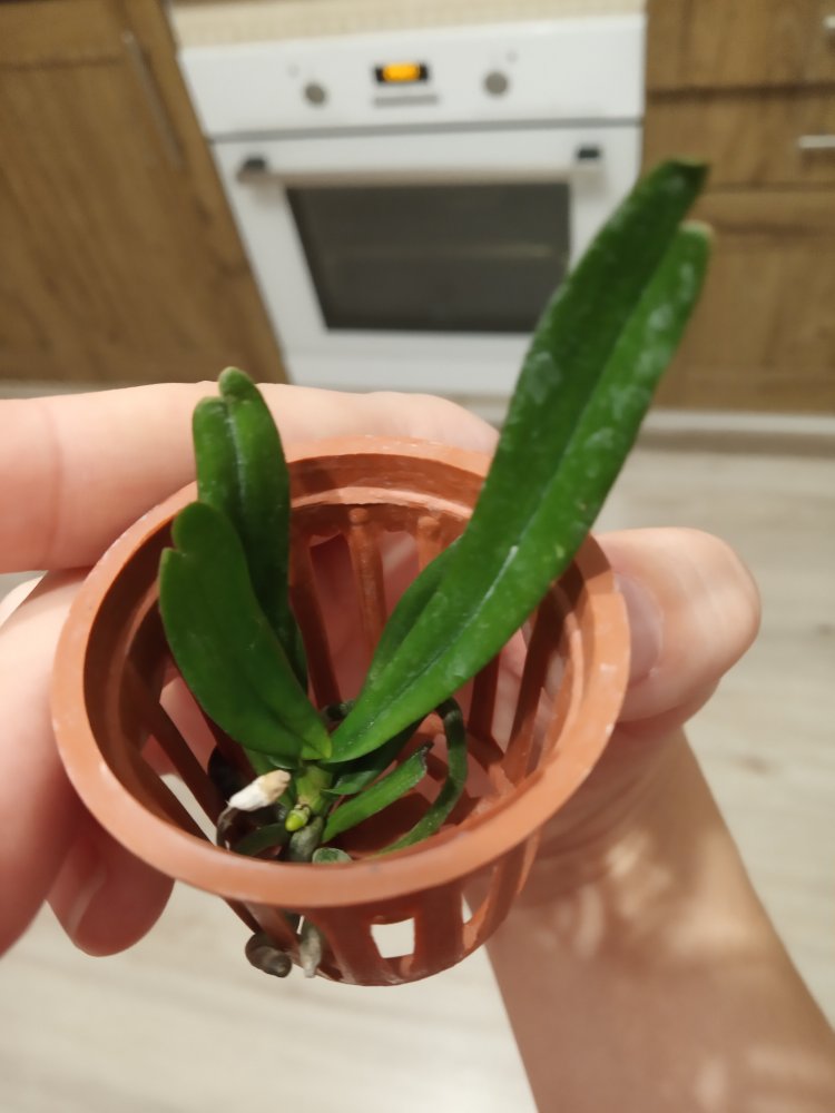 В заказе Aerangis rhodostricta. В малюсенькой корзинке. Крепкое здоровое растение, хорошие корни. Полный восторг!!!! Спасибо команде Пассифлоры и Людмиле за отправку.