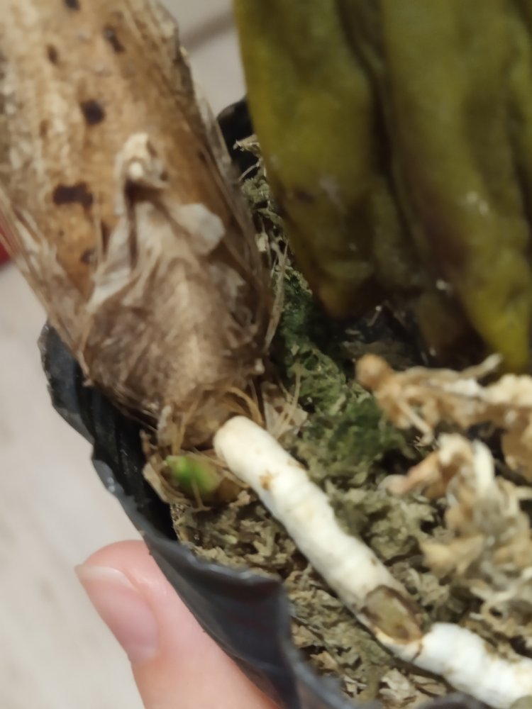 Пересажена недавно.Мох просушен.Мне кажется,что идёт цветонос😊