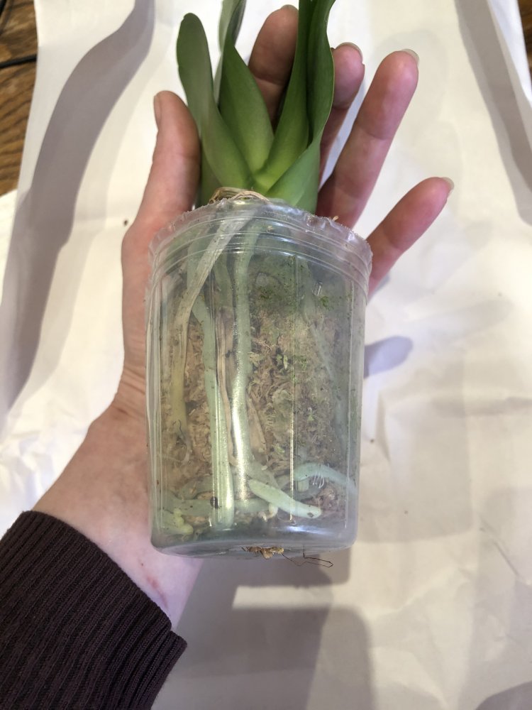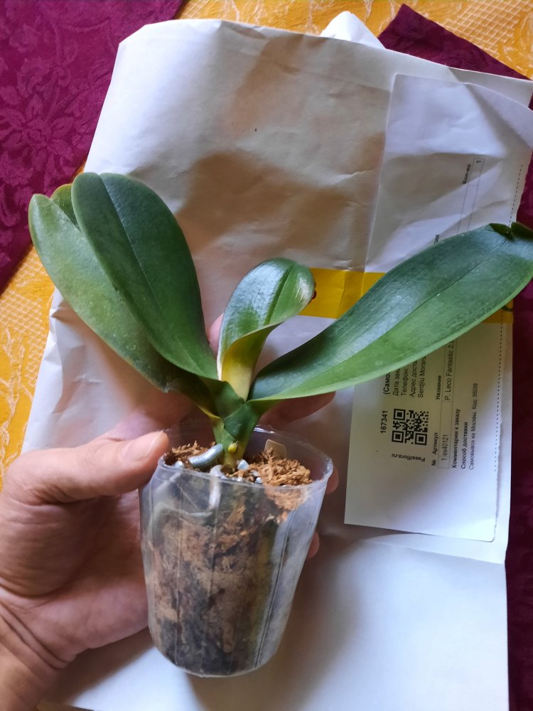 Тоже 6 месяцев от заказа до получения. И тоже заказом довольна, особенно из-за того, что растение с растущим цветоносом. Горшок 2,5, листья и корни в отличном состоянии, виден старый срезанные цветонос.