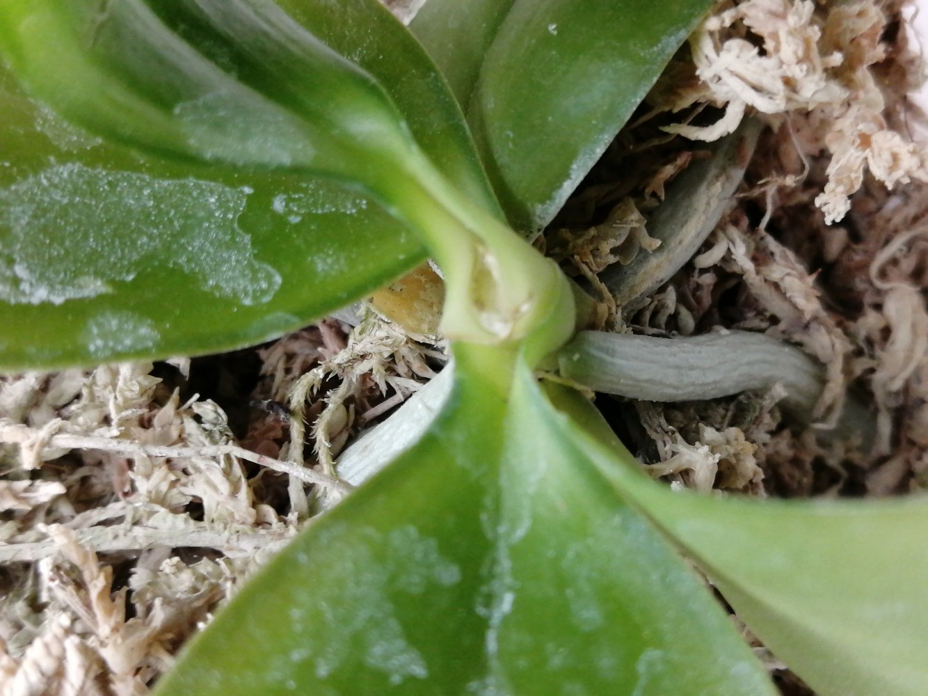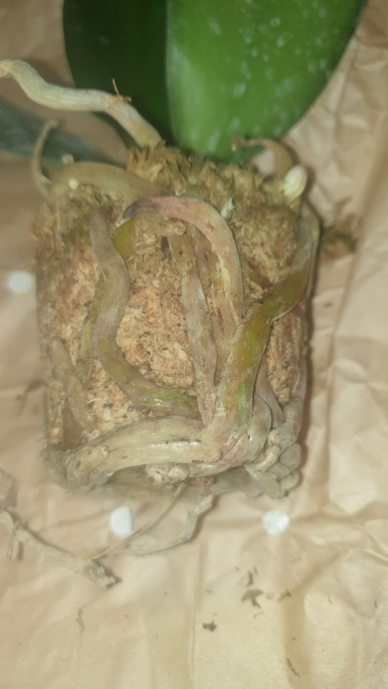 Сегодня утром не выдержала, вынула из стаканчика, сняла мох. Корни живые, всего штук 6 (осталось), 2 удалила - был повреждён веломен. Ещё один корешок закуклился и почернел, соскоблила. Всю черноту сняла, её было немного. И посадила в тот же мох с добавлением коры (как дренаж) в отрезанное донце пластиковой бутылки 0,5. Всё равно "тара" большевата. Теперь буду ждать, когда подрастёт. Одно обнадёживает: говорят, чем мельче растение, тем лучше адаптируется. Посмотрим.🤷‍♀️