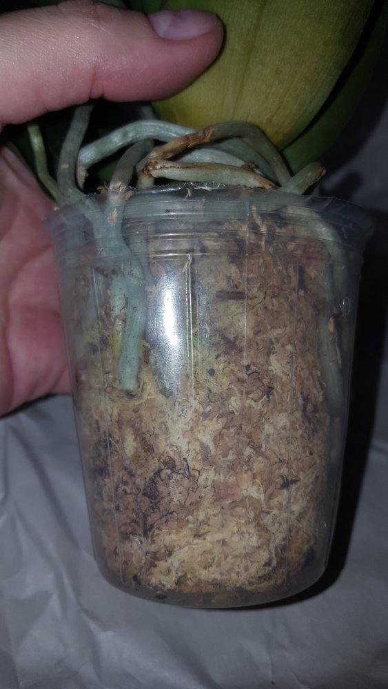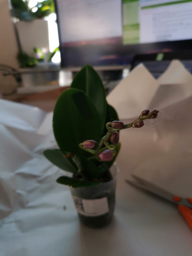 Удалось отхватить на распродаже на "Чёрной пятнице" шикарную, взрослую Phal. I-Hsin Cherry Bomb. Растение в горшке 3,5, мох хорошо просушен, видны корешки и что самое главное виден растущий цветонос. У растения также имеется три старых срезанных цветоноса. Листья в хорошем тургоре.