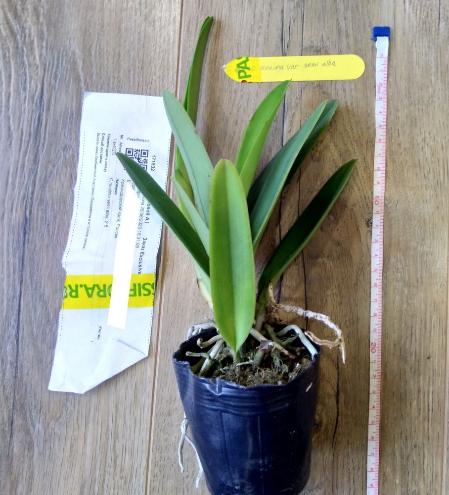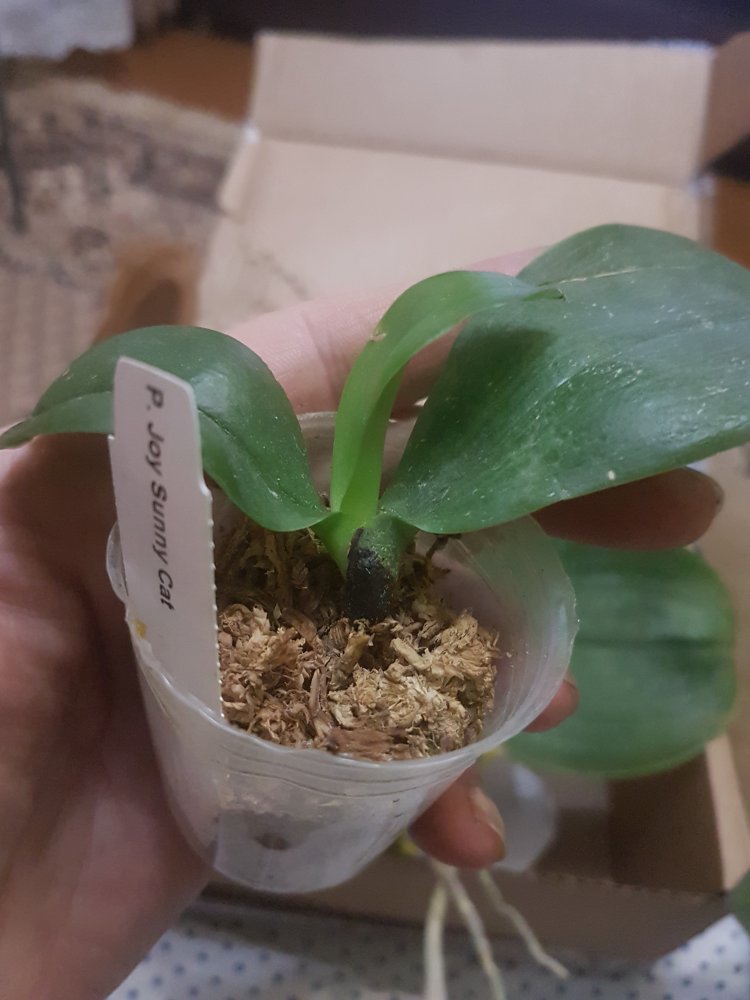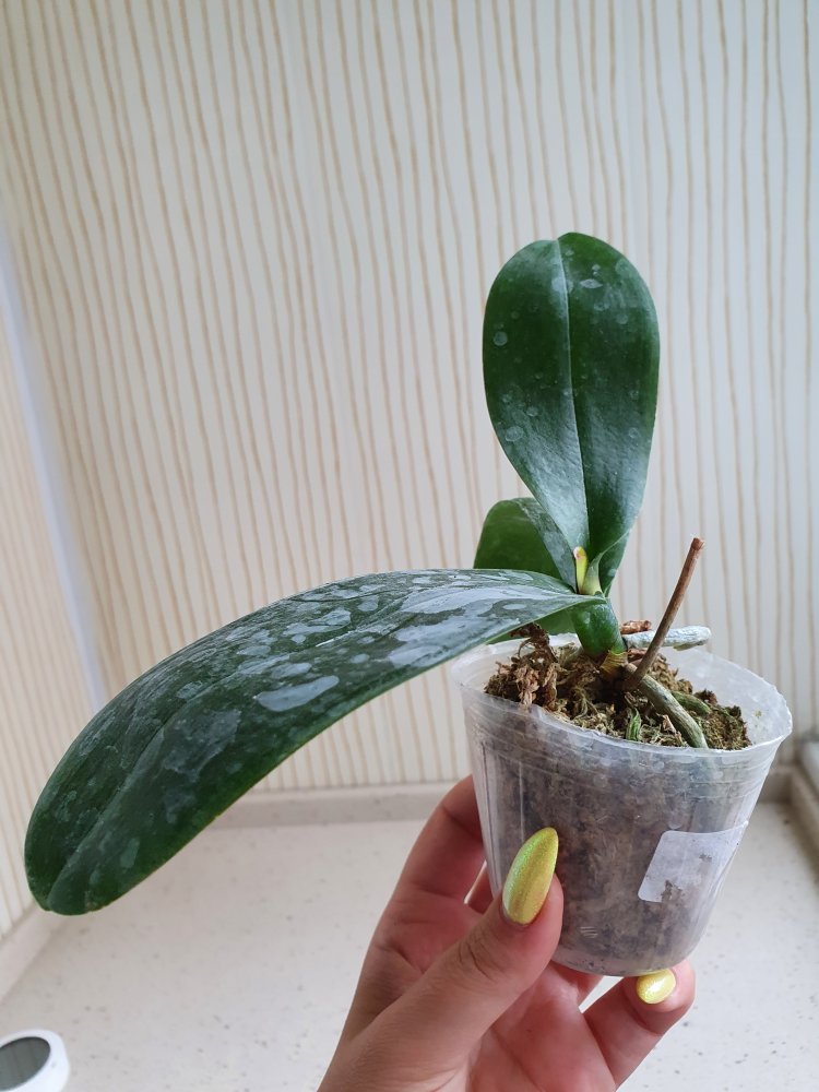 Хороший экземпляр, горшочек 2.5, 3 листочка, четвёртый начал расти, тургор слегка снижен, потому что очень пересох мох, корешков почти не видно. Но растение абсолютно здоровое, отопьется. Бирочки нет. Заказом довольна, жду цветения.