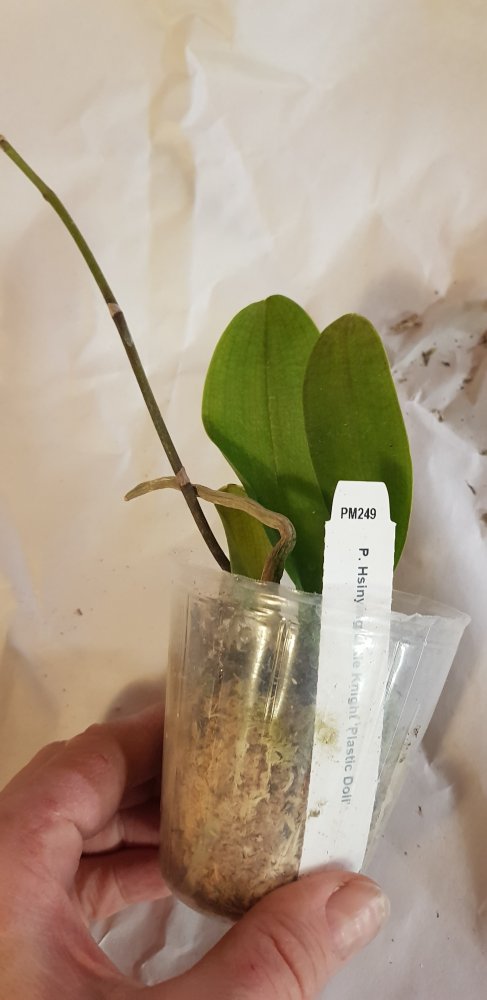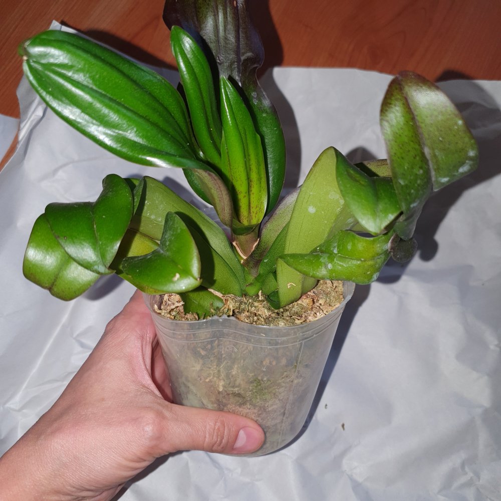 Заказ #188496 P. I-Hsin Mapple Valley заказан 9.06.21 получено сообщение 11 июня, 12 растение было получено. Заказ очень быстрый. Растение сильно усушено, тургор снижен, нижние листья отпали. Не критично. Корни живые есть. Два уже отцветших цветоноса с остатками цветов. Цветы были мелкие, около 3-4см. Листья не сизые. Темно зеленые. После полива стало видно что с крапом. На фото и видео выглядит гораздо эффектнее. А так похоже очень на парфюмерную фабрику. Бирки нет. У кого ни будь есть эта орхидея? Она так выглядит?