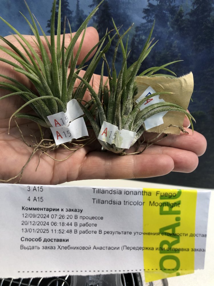 Заказы: 248252, 245955 получены на третий день СДЭКом в МО. Катлея Golf green Hair pig мощный куст с несколькими бульбами, бережно прикрыт грунт ватой, просушен хорошо, отвалилось пару маленьких листиков. Катлея Hawaiian Wedding Song Virgin немного мельче по размеру и бульб пять штучек, но она с бутонами! Буду надеяться, что не сбросит от переезда бутоны. Тилландсии заказано две разные, но пришли одинаковые в очень хорошем состоянии, как будто и не было дороги. Очень бодренький sapphire Galah! Все листики торчком, тургор не потерян совсем. И самая маленькая, но не засушеная была шилошиста - несколько тоненьких корешочков слегка зеленого цвета, было и пару сухих. Положила её на живой мох, будем нянчиться) В целом все растения отличного качества. Не пересушены и не влажные - дорогу перенесли хорошо. Огромное спасибо всем за работу, заботу и доставку растений!!!