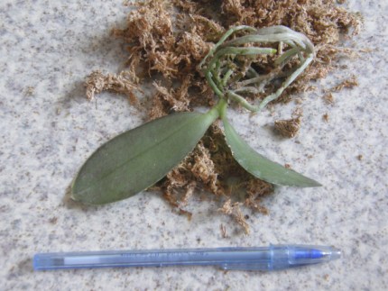 Phal.Zheng Min Archaeopteryx 'Peter #6' x Phal.Rothschil - честно говоря ожидала, что второй родитель подарит пусть небольшие крапушки по листу. На усохших листьях этого не увидила.