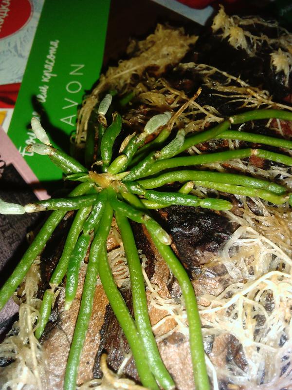Моя Chiloschista цветоносы не вытянула, отсушила! Возможно было слишком жарко, солнце в окно целый день+батареи ЦО. Но зато начал появлIMG_20180411_181748[1].jpgяться листочек и расти корни!