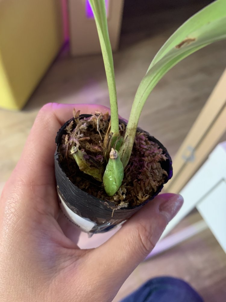 Что касается новых ростов - я вижу минимум два направления роста, на нижнем снимке бульбы по краям - это "молодые", от который и растут новые росты. ну и плюс от "старой" бульбы появился новый рост - понравилось ей у Вас, вот и старается! На левой бульбе похоже на цветоносик, но смущает общий размер, как-то маловата она для цветения. Однако - все может быть! Вот в сообщении выше ЛюдмилаВ показывает цветонос с шикарным бутоном, тьфу-тьфу... И тоже ликсточка не слон ни разу!Так что всякое может быть!!! и если не в этот раз, то в следующий обязательно порадует!