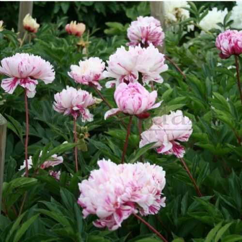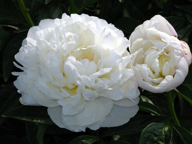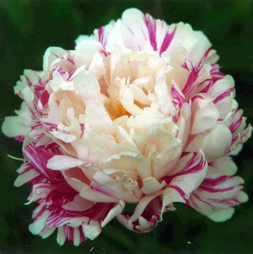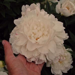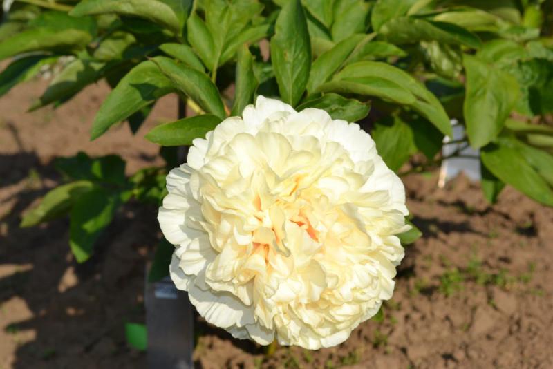 Официальное описание цветка: чисто-белый, двойной махровый, среднего или крупного размера на сильном стебле средней высоты. Лепестки перекрывающиеся и симметрично расположены. Цветок прекрасной консистенции и хорошо стоит в срезке. Часто на цветках имеются красные штрихи на нижней стороне покрывающих лепестков которые никогда не проявляются внутри цветка что делает этот сорт самым чисто-белым из всех.