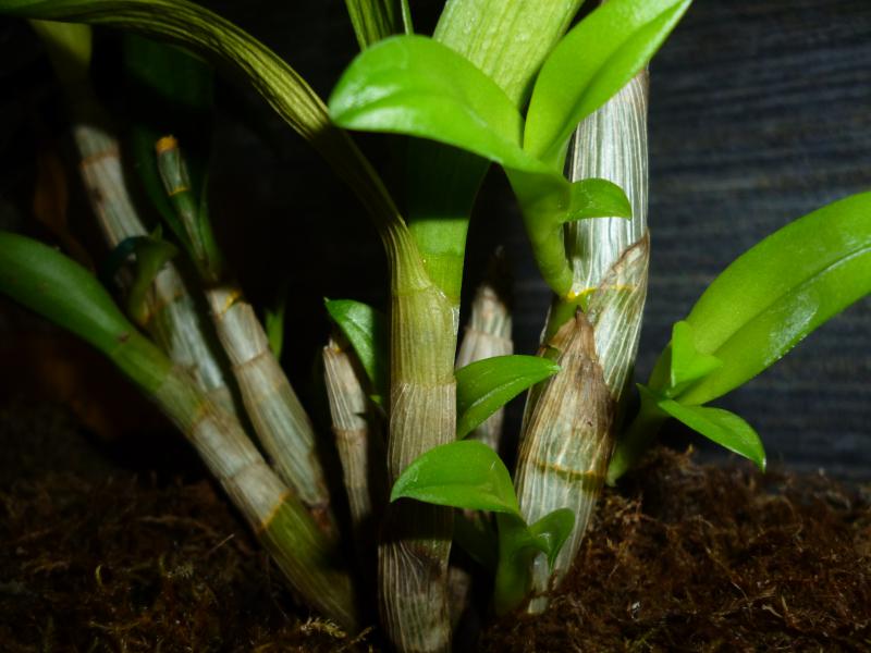 Я не сильно разбираюсь в них, но остатки цветоносов - на вершине ствола и листья довольно таки твердые и мясистые. Скажем так, у первого моего дендра стволы длиннее и тоньше и листики мягкие и тонкие. А этот ниже ростом, но и толще ствол и листья короткие, округлые, и мясисто-твердые. На фаленопсисовый гибрид похож....