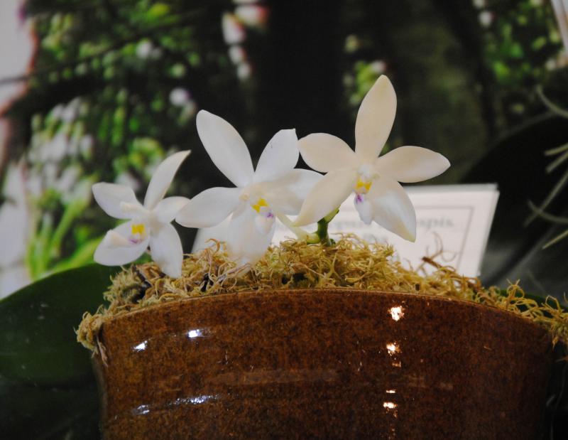 Стенд Ларисы (Леи)!!! Такие растения, просто восторг!!!! Неофинетии, маленькие дендробиумы moniliforme и небольшие цимбидиумы представлены в стиле японского минимализма!