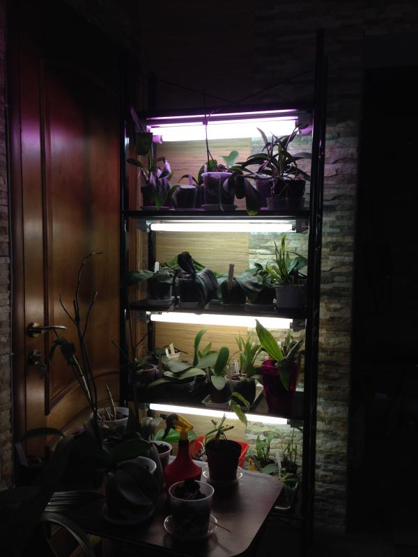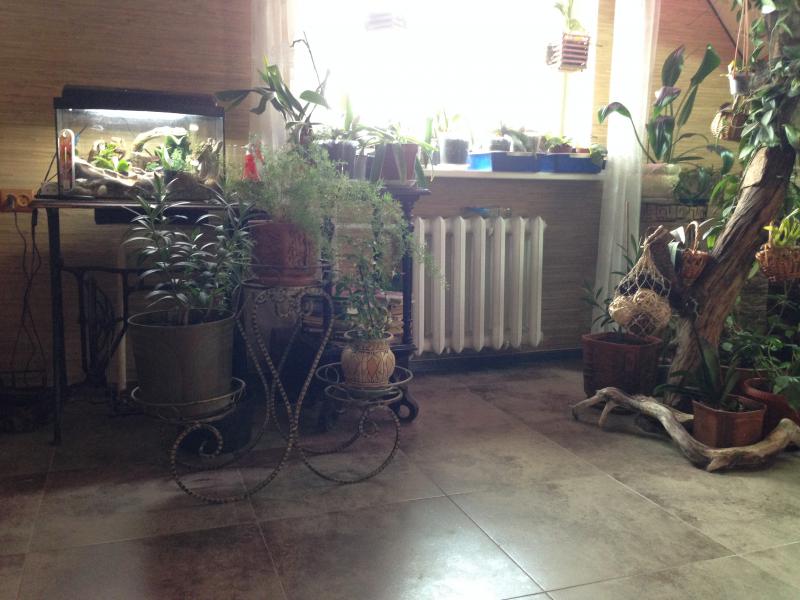 Если кратко о конструкции. Фундамент-плиты, единый с домом. Отдельно делать не советовали, так как может вся конструкция отходить от стен. Фундамент внутри засыпан землей, последний метр -керамзит. Есть сток на улицу, но обычно керамзит все впитывает, даже когда срывает поливочный шланг на улицу ничего не течет, все впитывается. Каркас-алюминий, это очень дорогая конструкция и делали на заказ. Окна пластиковые. Отопление конвекторами, они ничего не сушат но надо брать алюминиевые, иначе ржавеют. Мне вот свои надо менять, брала железные. Пол плитка с водяным подогревом. Полив автоматический, смесь 2-х систем Гардена и Хозелок, муж монтировал самостоятельно. Есть маленький бассейн с кувшинкой и фонтан, но пока не работает, при скачке напряжения по-моему сгорел двигатель. Крыша- матовый поликарбонат, вентиляция естественная, окно под крышей и дверь на противоположной стороне. Ориентация южная. Отопление-общий котел. Зимой около 5000р только на отопление зимнего сада уходит. На конвекторах стоят автоматические терморегуляторы, при жаре они отключают батареи для экономии газа. Есть датчик температуры, при понижении до +8 шлет СМС и я дополнительно включаю электрообогреватель, но это бывает редко, при -35 только. Температура зимой +10-+12 ночью, +20 днем, летом без отопления прибавляет +5 градусов к уличной температуре. И еще окна летом притеняю жалюзями, иначе все горит. Зимой жалюзи открываю. Дополнительно освещения нет, естественного хватает и даже с избытком летом. Климат-субтропики, фалики выращивать не получится, замерзнут. Только каттлеи, дендры, цимбидиумы.