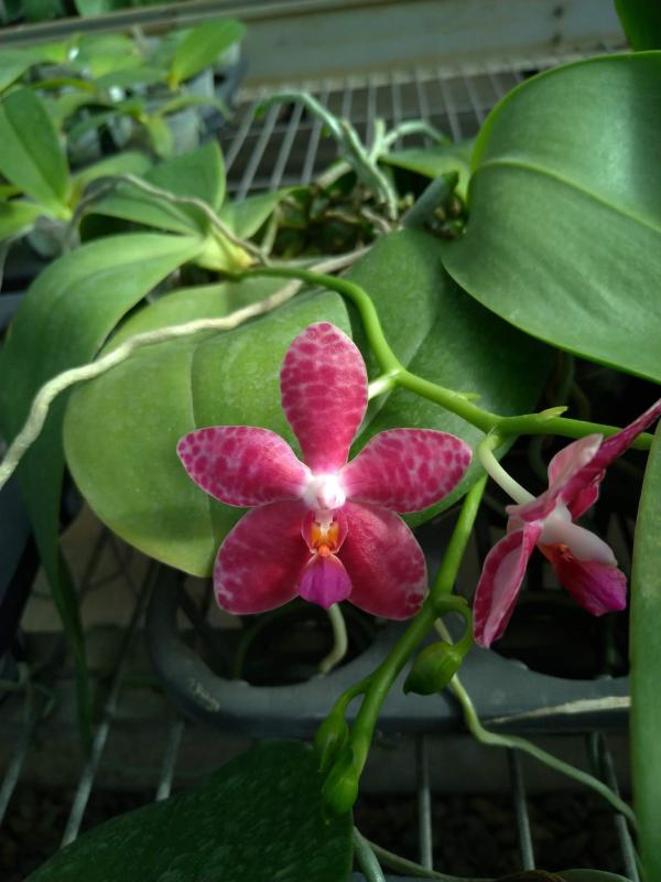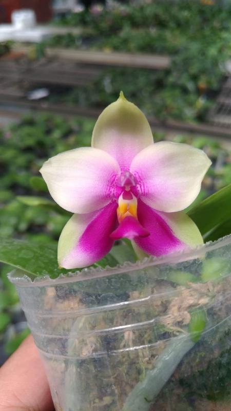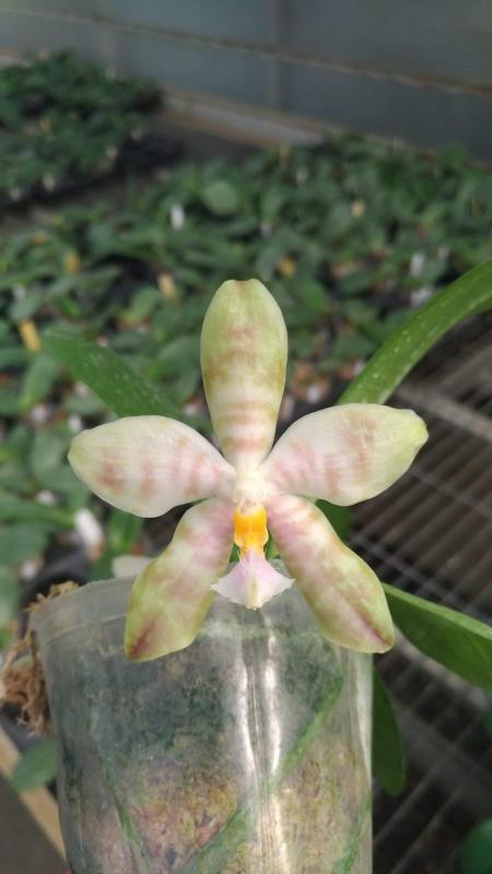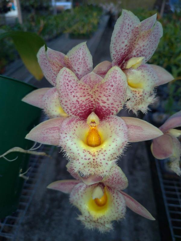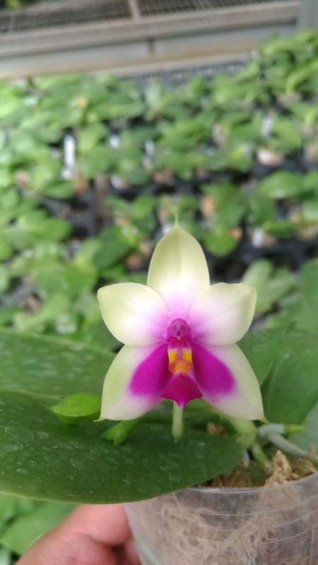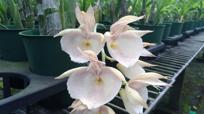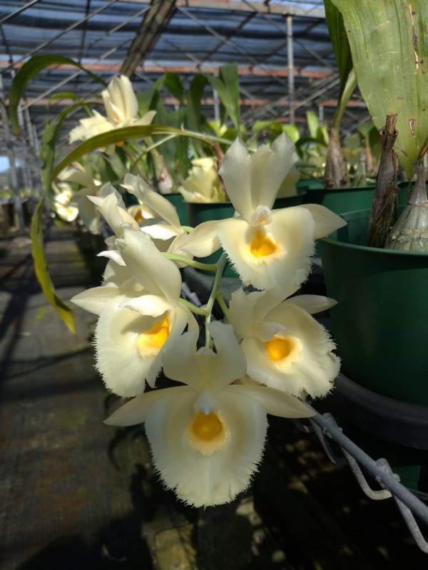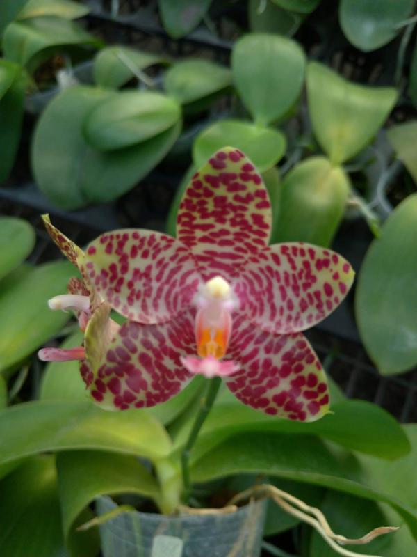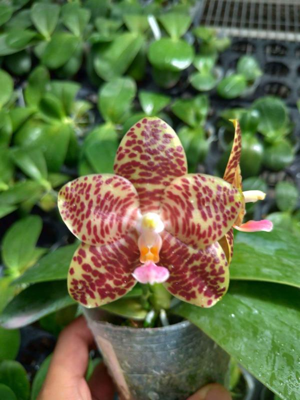 Vanda(Ascocentrum) ampullaceum В природе Vanda ampullacea встречается в Гималаях, Китае, Лаосе, Мьянме, Индии, Бангладеше, Непале и многих других Азиатских странах, где произрастает эпифитно на деревьях на высоте от 300 до 1.500 метров над уровнем моря. Растение моноподиальное, состоящее из стебля (25 см высотой и 1 см шириной), достаточно густо покрытого листьями (растут парами). Листья чаще всего имеют красноватый оттенок или же покрыты красными пятнами, размером 15 см длиной и 1-2 см шириной. Цветоносы свисающие, появляются из пазух между листьями и стеблем, в длину достигают до 12 см и несут в себе множество цветков. Цветы красные или фиолетовые, со шпорой (0,7 см длиной), размером от 1,5 до 2,5 см в диаметре, колонка белая. Сепалии овальные, размером 0,9 см длиной и 0,5 см шириной. Петалии аналогичной формы, только несколько длиннее. Губа тройная, боковые её части прямые, а передняя удлинённая, слегка выгнутая вперёд, с закруглённым кончиком, общий размер 0,7 см длиной и 0,2 см шириной.