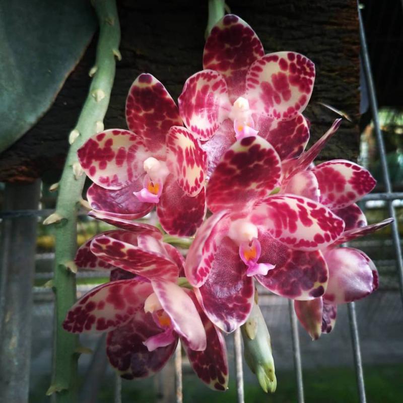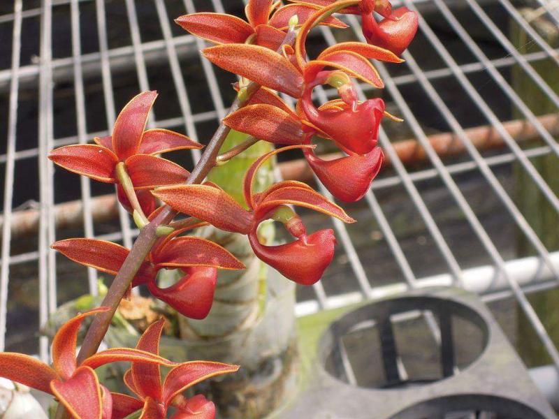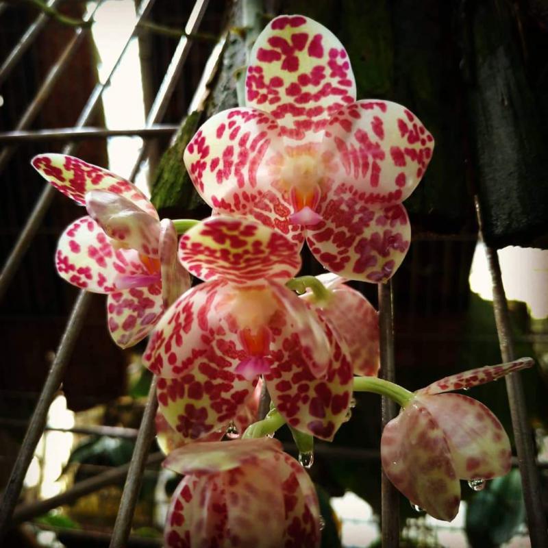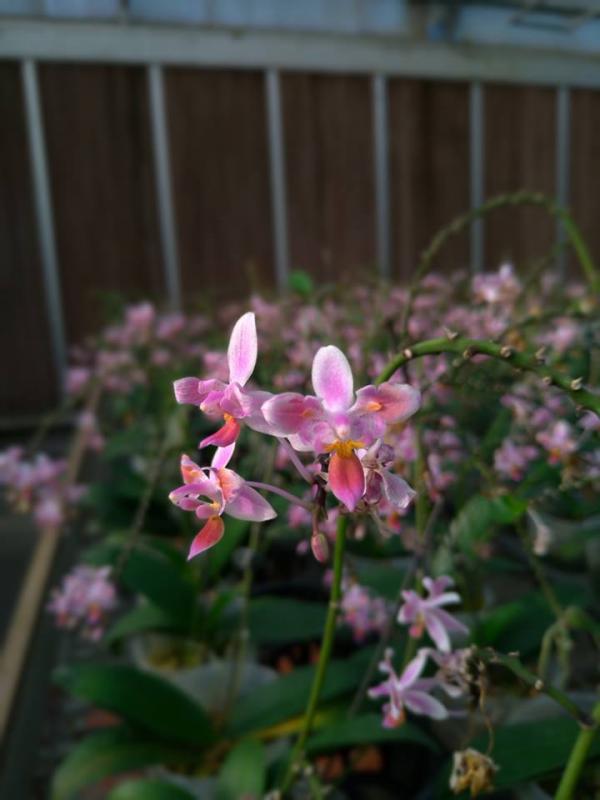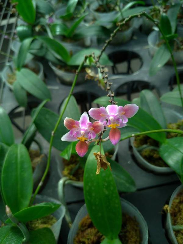 Примечание: Фаленопсис equestris — несложная в уходе орхидея, которая легко приспосабливается к различным условиям. На цветоносах часто появляются детки (кейки), а на корневище могут образовываться боковые отростки, которые зацветают одновременно с материнским растением. Корни и цветоносы у этой орхидеи обрезать не следует, так как они растут и ветвятся в течение нескольких лет.
