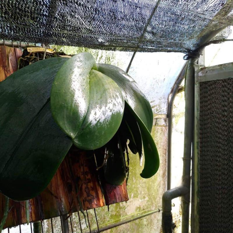 Фаленопсис гигантский — крупный моноподиальный эпифит с очень длинными листьями.