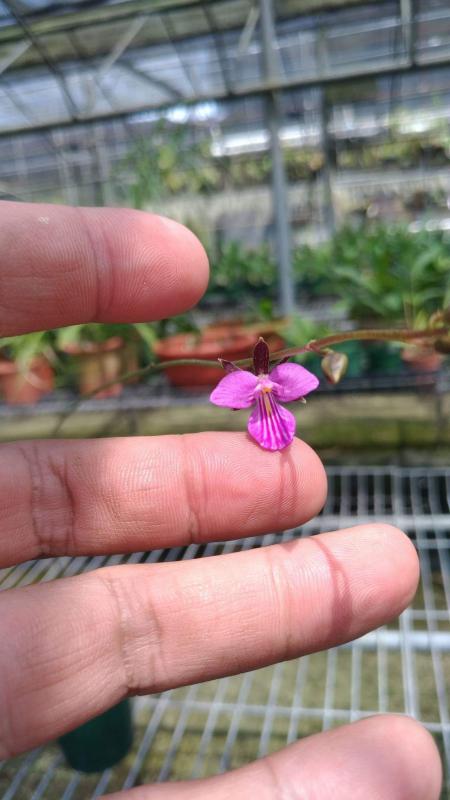 Развитое растение может выпускать до 14 многолетних цветоносов длиной 30–46 см. Каждый год на Фаленопсисе equestris образуется несколько новых зигзагообразных цветоносов светло-пурпурного цвета, которые могут ветвиться и цвести на протяжении нескольких лет.
