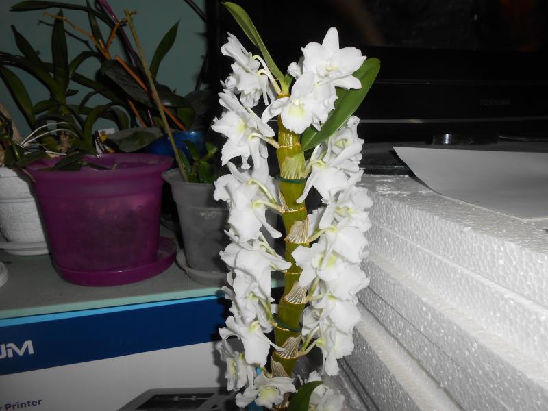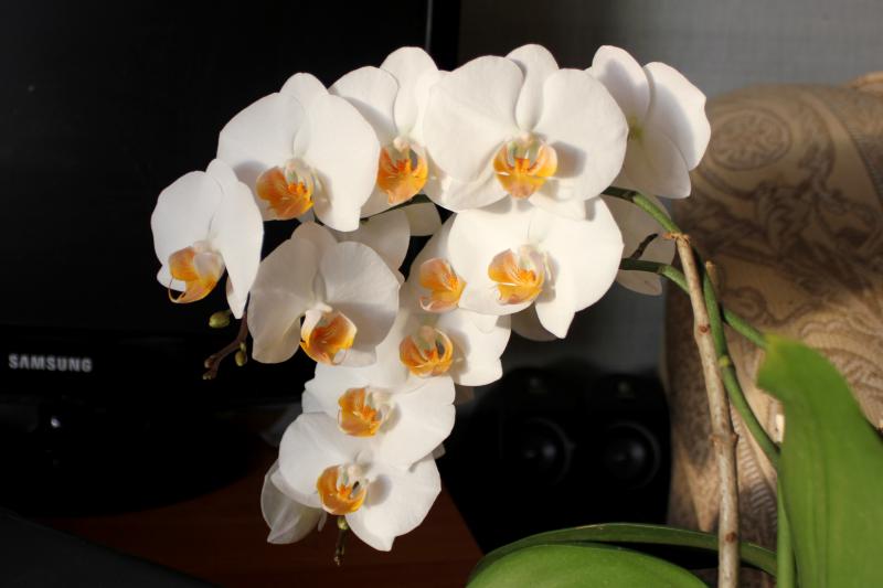В середине лета с Хозяйкой что-то случилось. Да и на детках моих странные наросты появились. Я уж было подумал, может, жара дикая виновата? Или злая волшебница Хозяйку в Ведьму превратила. Она в один миг вдруг стала жадная, невнимательная и глупая: ткнула назад в комнату, где беспрерывно искусственный холодный ветер работал, и забыла обо мне и моих детках. Ни крошечки вкусненькое еды нам не перепадало, ни капельки живительной воды в ножки не плескала. Изредка пшикала росой мелкой. Такие издевательства только увеличивали жажду! Через три недели страдания наши были прекращены, ровно в тот день, когда на детках моих пупырки в красивые цветоносы превратились. Хозяйка опять стала доброй, она радовалась, смеялась, рассматривая диковинные "штучки". Переселила обратно на лоджию. Вместе с ней и детки радовались, благодарно наращивая цветоносы. А 8 сентября детки утром проснулись, в шубки одетые. В красивые, белоснежные, пушистые шубки из цветочков. Вот стоят до сих пор в одеяниях своих и перед глазами моими красуются, ностальгию по молодости в сердце моем вызывают.