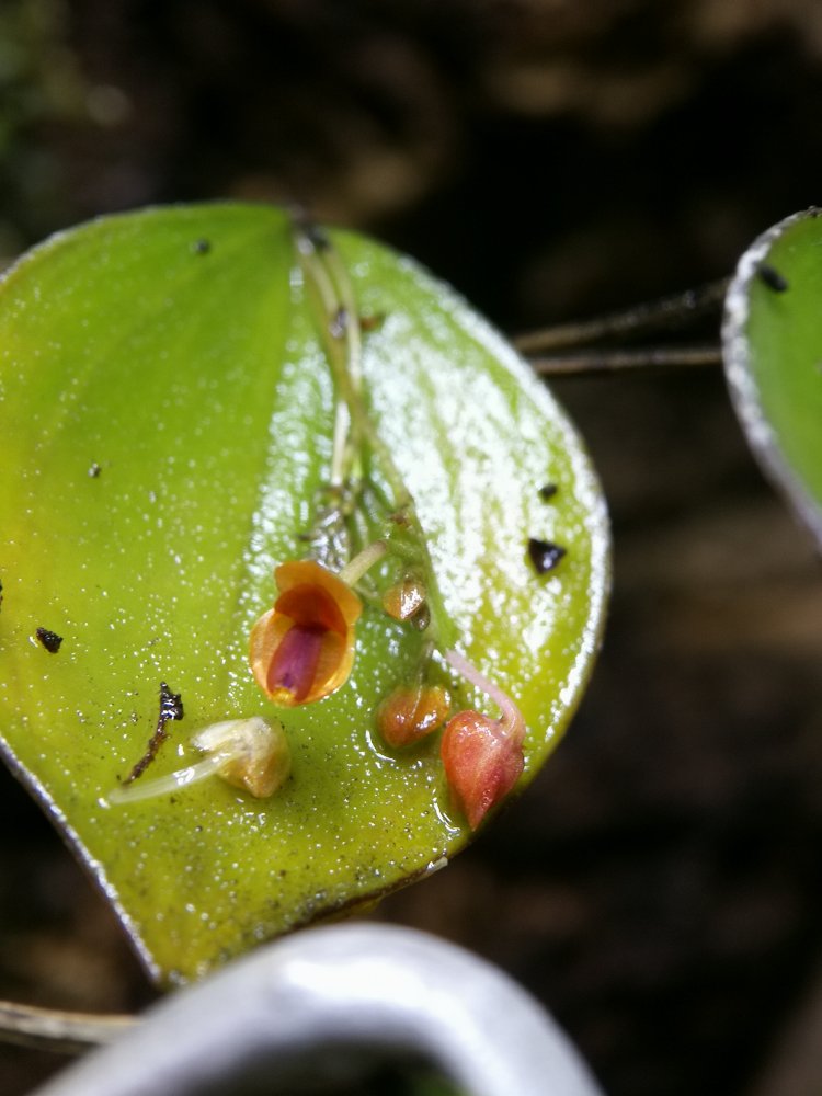 В прошлом месяце я сокрушалась, что улитки пожрали все бутоны lepanthes telipogoniflora, коих у меня целых четыре. Ни одного открытого не удавалось застать, только бутоны. И тут - подарок!!! Один несожранный открылся! Великолепен и огромен, и правда!!! И фото неоткрывшихся бутонов...