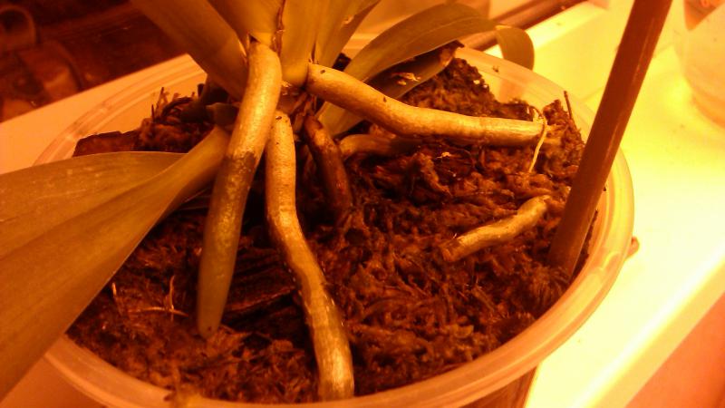 Angcaecum Gestwood Tomorrw-получен от поставщика Chuang-31.10.2014.Был посажен в мох.Корни были,но не много.Тонкие и при очищении от мха и пересадке кое что было поломано.Посадила я его в большой горшок.1/4 часть керамзита,затем кора вперемешку со мхом.Сверху сантиметровый слой мха.У меня застекленная и утепленная лоджия.Все орхидеи растут там.И нового жильца определила туда же.Растет под мощной подсветкой в 30 см от лампы Рефлакс.Растение по моему мнению даже не почувствовало пересадки.За 2 месяца напустило кучу толстых корней,выдало приствольную детку и развило цветонос.Полив частый без просыхания грунта,рекомендуется душ,что я ему и делаю.Подкормок пока нет так как растет цветонос,да и зима.