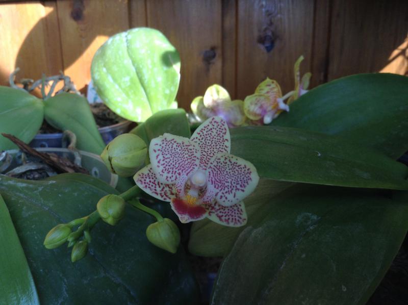 Считаю его сложным пафиопедилюмом. Как уже сказала, получила в феврале 13 года, взрослой розеткой, готовой к цветению, с хорошими корнями. Жил на юго-восточном окне, как почти все мои орхидеи, зимой стоял с подсветкой. И никак. Еще и капризничал. В этом году мы, наконец-то, утеплили балкон и я все пафы перенесла туда. Больше света, хорошие перепады день-ночь. Так что все лето стоял на самом солнцепеке, не притенялся, к моему удивлению ему это понравилось, и как спала июльская жара, увидела в розетке бутон. Впереди зима, новые условия на балконе, дальше видно будет.