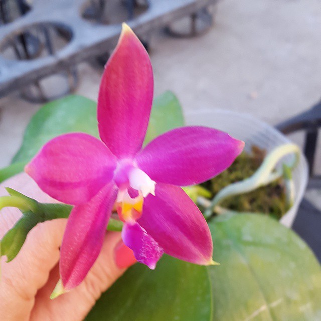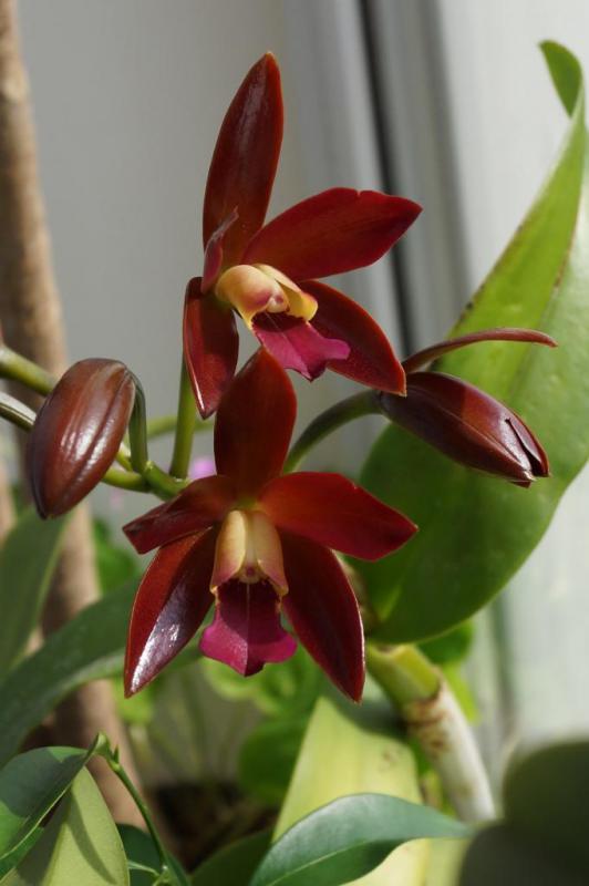 Более светлый оттенок получился в более прохладных условиях. Цветок маленький, но петалии выправились, потому что при "первом" домашнем цветении цветочки так и не смогли до конца распрямиться. Думаю, силенок не хватило после адаптации. И буточиков было три, но одновременно вытянуло только два.
