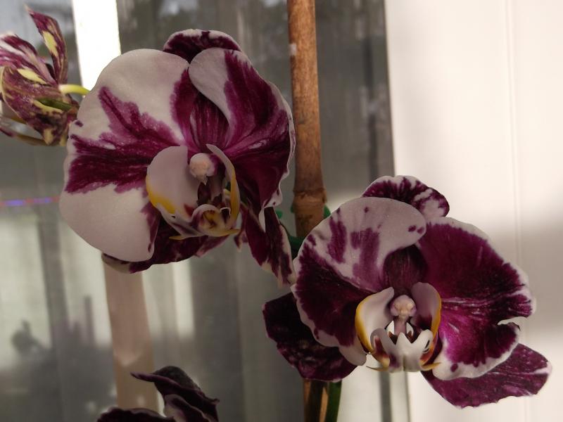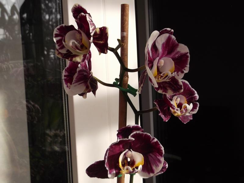 форма, фактура - да... но мелковат и "редкозуб"...)))) может это, конечно, первое цветение? пришел со стрелкой и с подозрением на гниль... стрелку подрезала, принялась за лечение... а он, вреднюга, боковую почку на остатке стрелы давай спешно растить и бутонить... теперь еще и второй цветонос тянет... и вот...(