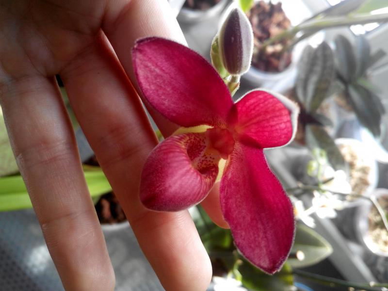 Влажность не высокая,но поддерживаю огромным количеством цветов :blush::,когда замачивать времени нет ,просто поливаю сверху,когда каждый день,когда пасмурно полив пропускаю,стоит на подносе вода стикает в него и корень иногда остается во влажном. Орха не большая см 10 в высоту,цветочек мелкий см 2Х2. Думаю большой Renanthera не будет.