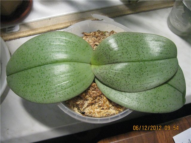 Родители у Big Leaf были взяты Phalaenopsis (gigantea 'Texas Beauty' X Dragon Tree Eagle 'DT#1', AM/AOS)