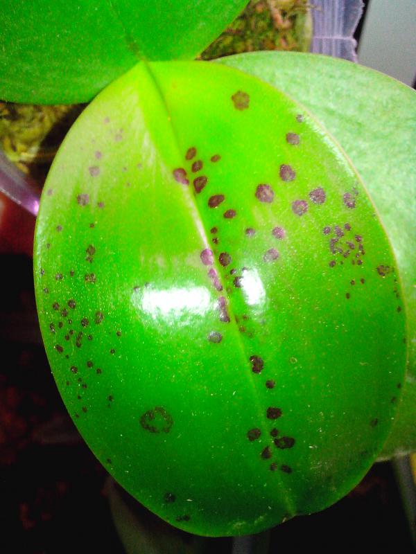 у меня похожие пятнышки были на молоденьком листике, потом лист потемнел и они стали не видны