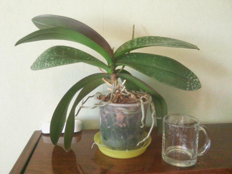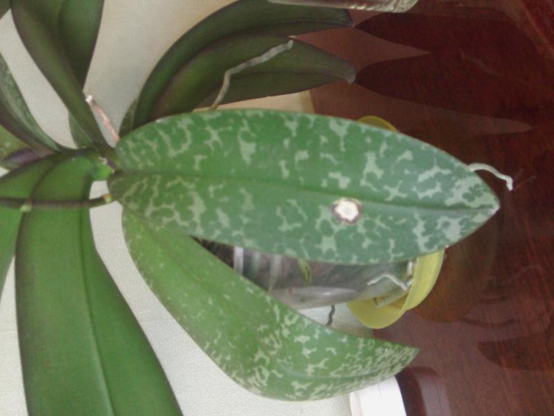 Да, на одном листе дырка - механическое повреждение. Цветонос обрезан, недавно отцвел.