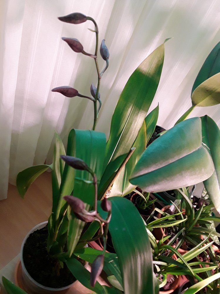 Несмотря на распространенность этих орхидей в сетевых садовых гипермаркетах и их огромное разнообразие, в домашних условиях они ведут себя не совсем хорошо. А именно - растут прекрасно, но цветения от них добиться очень тяжело. Особенно, если это какие то одонтиоды - гибриды с участием одонотоглоссума. Стандартный фокус с увеличением освещения может не дать результата, также как содержание в прохладе. В этом летнем сезоне поэкспериментировала с содержанием последней одонтиоды в своей коллекции - все прошлые надоело выращивать годами "пальмы" без цветения. Уж как я вокруг них не плясала - толку ноль, не цвели и все тут. Решила выставить последнюю на улицу сразу в конце апреля. На тот момент у нее был 1 взрослый рост и 1 новый, не до конца выросший. Росла она хорошо, растила корни от этого роста. Начиная с июня выставила ее на открытое прямое солнце. Поливала от души, но так, чтобы растение успевало обсохнуть до попадания на него солнечных лучей. К моему огромному удивлению, она не горела! Хотя на таком солнце сгорели бы даже катлеи. К концу июля рост начал наливать бульбу. Также лето было не сильно жарким, выдавались и очень холодные дни и ночи. Когда большинство орхидей убирала с улицы, ее оставляла ночевать там вместе со всеми холодниками. В августе ночи были совсем холодные, иногда до +5. И, о чудо! она выдала сразу 2 цветоноса! Занесла ее домой в начале сентября. Сейчас уже доращивает цветоносы дома под лампой. Теперь перепады и настолько яркое освещение не нужны, зацветет уже итак.