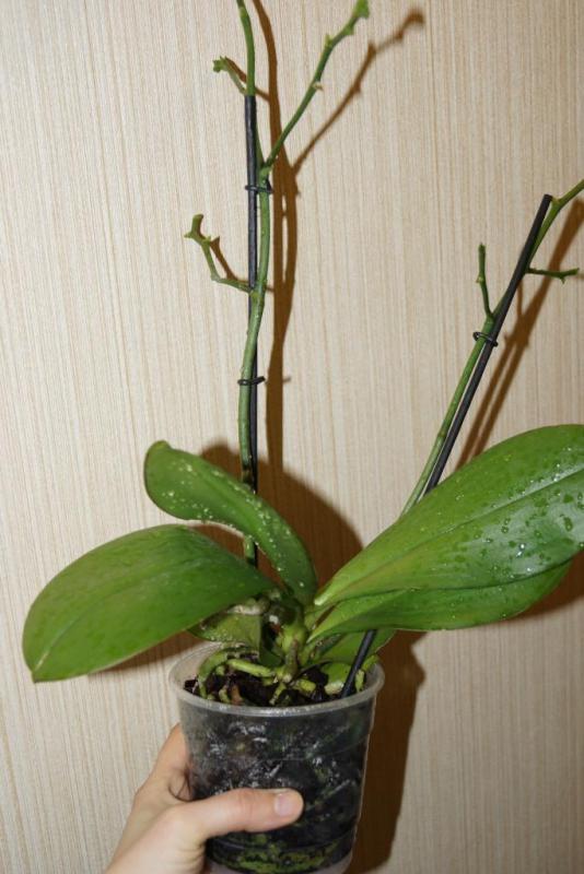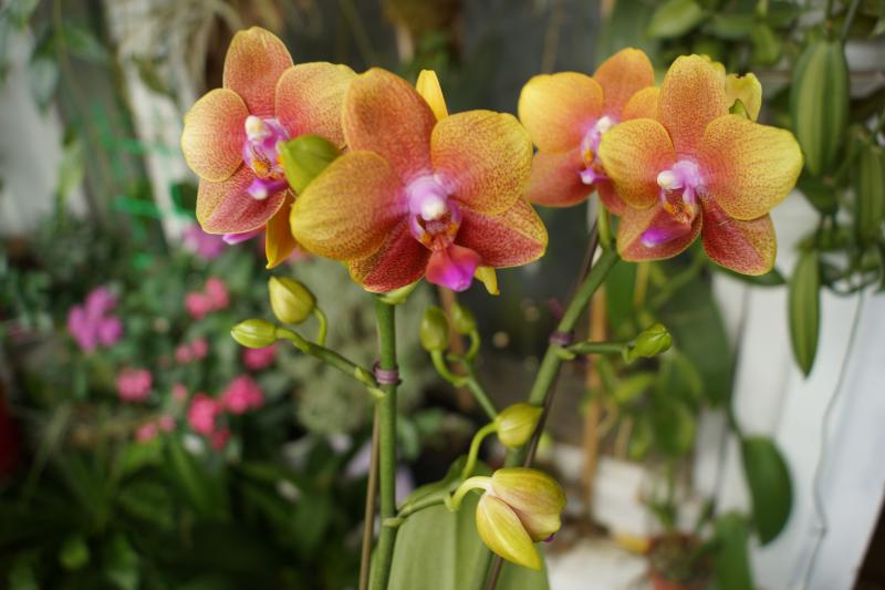 Шикарная Сара Голд, большая взрослая. Два сильноразветвленных цветоноса, уже цветших, но с бутончиками на концах. Сейчас распустившихся цветов нет, бутончики на фото ))