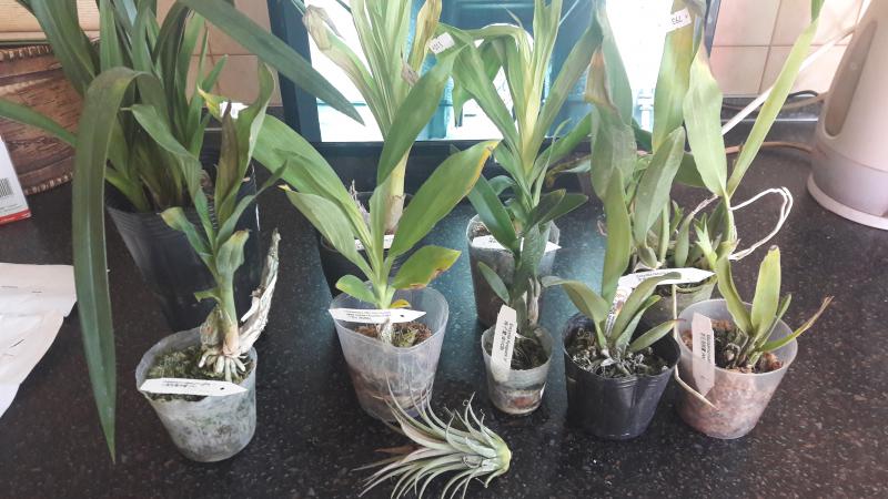 Ren.monachica 2.5' - в коре, уже цвела, на субстрате валялись сухие листья, в целом выглядит неплохо.