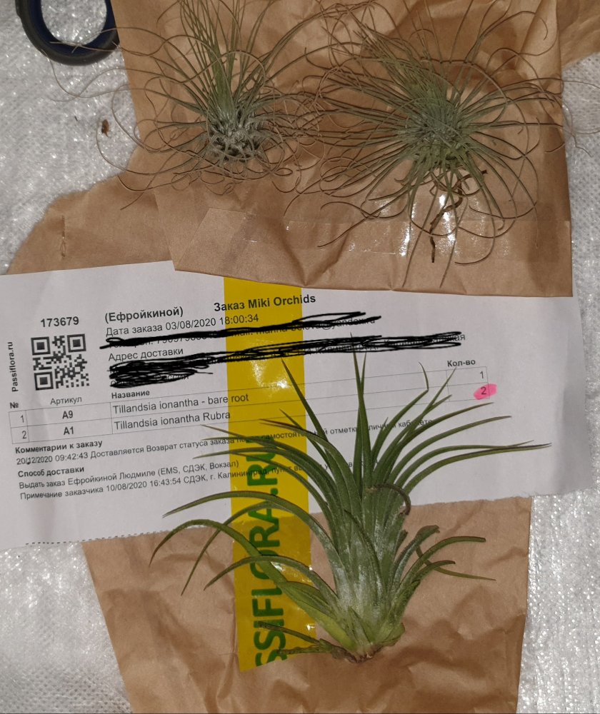 В заказе три растения, но пришло только два, одно из них — замена. Видимо, замена коснулась гибрида седиреи - напротив нее стоит код (видно на фото в накладной), в то время как гибриду кловезии такой характерный код не присвоен. Так что надеюсь, что еще не все разобрали, и получу ее позже.