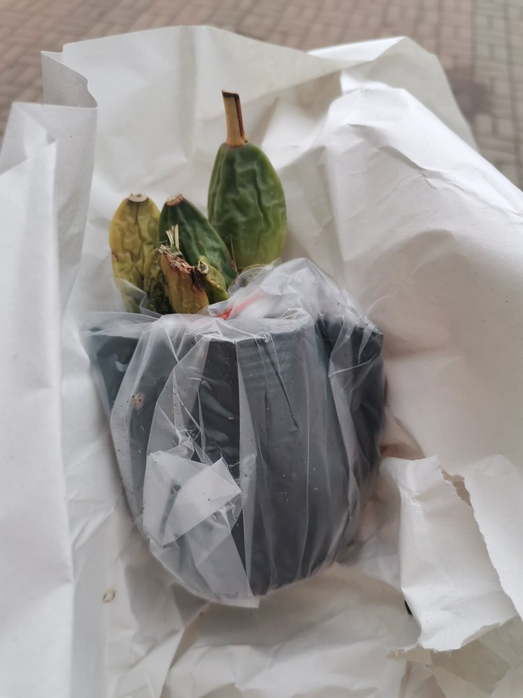 Согласно этикетке на заказе 1 растения по заказу, а одно не пойми, что пришло, без названия, только абривеатура в35. Похоже на белину. Оба посажены мох, тоже очень сильно усушенный. Взрослые. Неизвестный аж две штуки в горшке.