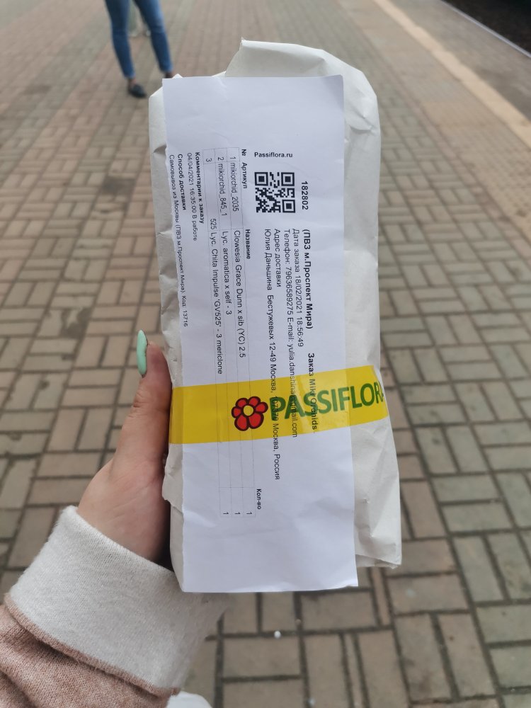Заказ 188965 от 20/06/2021. Phal. (Morning Moon x Kikuno Taiyo) Apollon 1,7. Получен в день смсв ПВЗ, в дороге 1 час в городском транспорте. Доехал хорошо. Пришел в размере 2,5. Мох просушен растение здоровое, несмотря на то, что на упаковочном пакете просохшие следы от плесени. Ярлыка нет. Надеюсь без замен. Ждала долго, рада получению качественного растения. В ожидании ещё заказов от Мики ( статус "доставляется"🤗). Спасибо всем причастным.