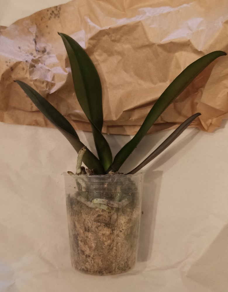 Каттлея бодрая, много бульбочек, есть два направления роста или их две в горшке, что часто бывает. Мох хорошо просушен, видны корешки, на кончиках листьев чернота немного, надеюсь дальше не пойдет. Конечно размер не FS, но близко☺