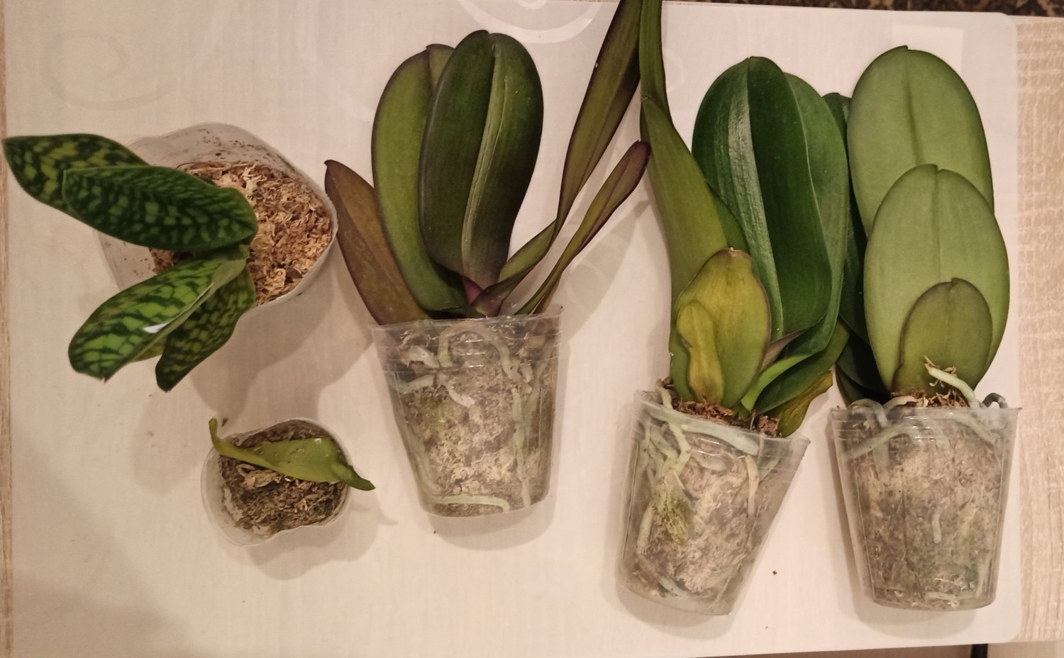 Три достаточно крупных растения в размере горшка 2,5 и одно 1,7. Мох хорошо просушен. Наклейка с накладной совпадает только у одного, два похоже на замену phal. Little Fox явно не присутствует, судя по размером, она должна быть миниатюрной. С тетрасписом все особо печально: он пришел с одним листом и тот отвалился. В размере 1,7, вряд ли сможет дать новый пост. Печаль 😢IMG_20221118_003606.jpg