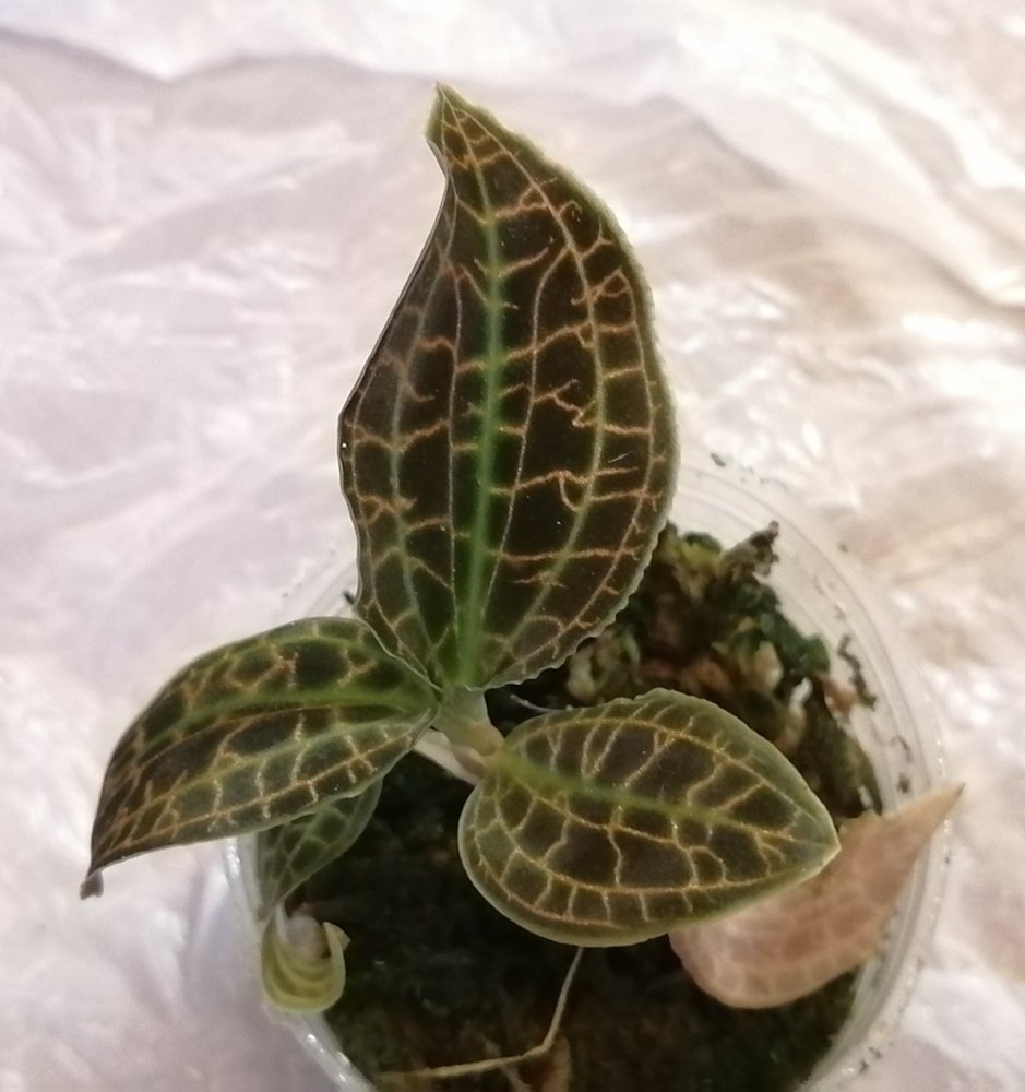 В заказе был Ludochilus Dominyi x Anoectochilus roxburghii - пришел посаженым в мох, мох сильноу сушен, немного повяли листья (на фото, он уже напоен.). В принципе неплохая драгоценка, взрослая. Только совсем не такая как должна быть на фото в каталоге