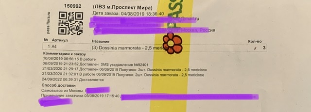Заказ от февраля 2021 года номер 182596. Поступил в ПВЗ 17.11.2022, получен 18.11.2022, вёз домой на машине. Дааааа.... Такова г.... на я давно не получал. Почти 2 года ожидания и увеличение в 2 раза от первоначальной стоимости. В заказе 5 растений, совпадение по артикулу только одно, но есть ощущение что полный пепесорт и замены. При этом на что заменили понять нет возможности. 3 растения в нормальном состоянии, только небольшие следы запрелости на листьях, у ещё одного повреждены все листья, есть сомнения что выживет. И вишенка на торте растюха лего, развалившееся на запчасти из за того что корневая шейка сгнила полностью. В общем пора завязывать с этим поставщиком. Больше я на этот развод не поведусь. Очень обидно и досадно.
