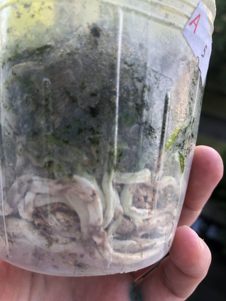 Отличное растение, из всей троицы устало больше остальных, корешков поменьше, чем у других двух, но все равно тургор очень хороший, учитывая переезды и стрессы. Отпоим.