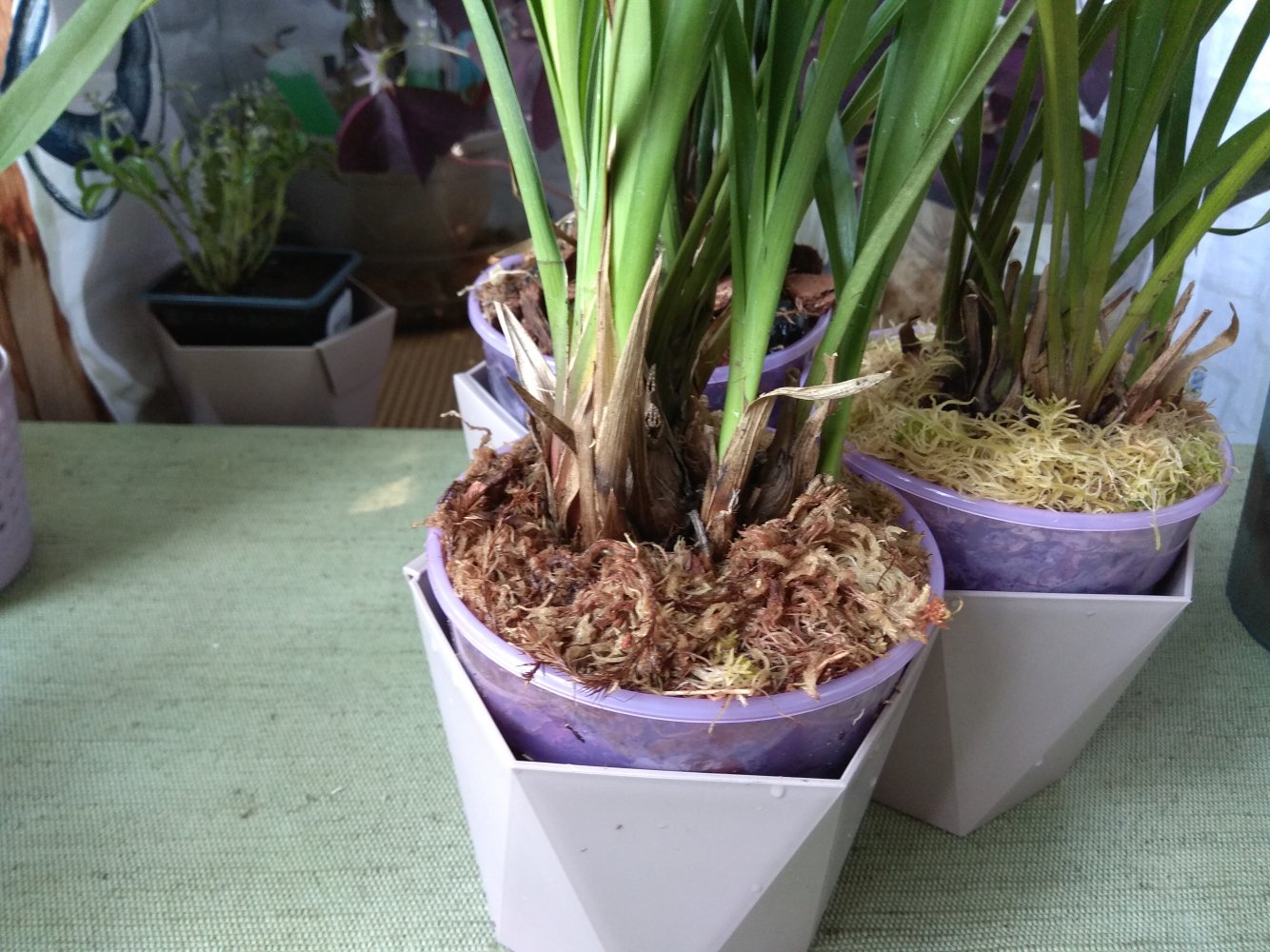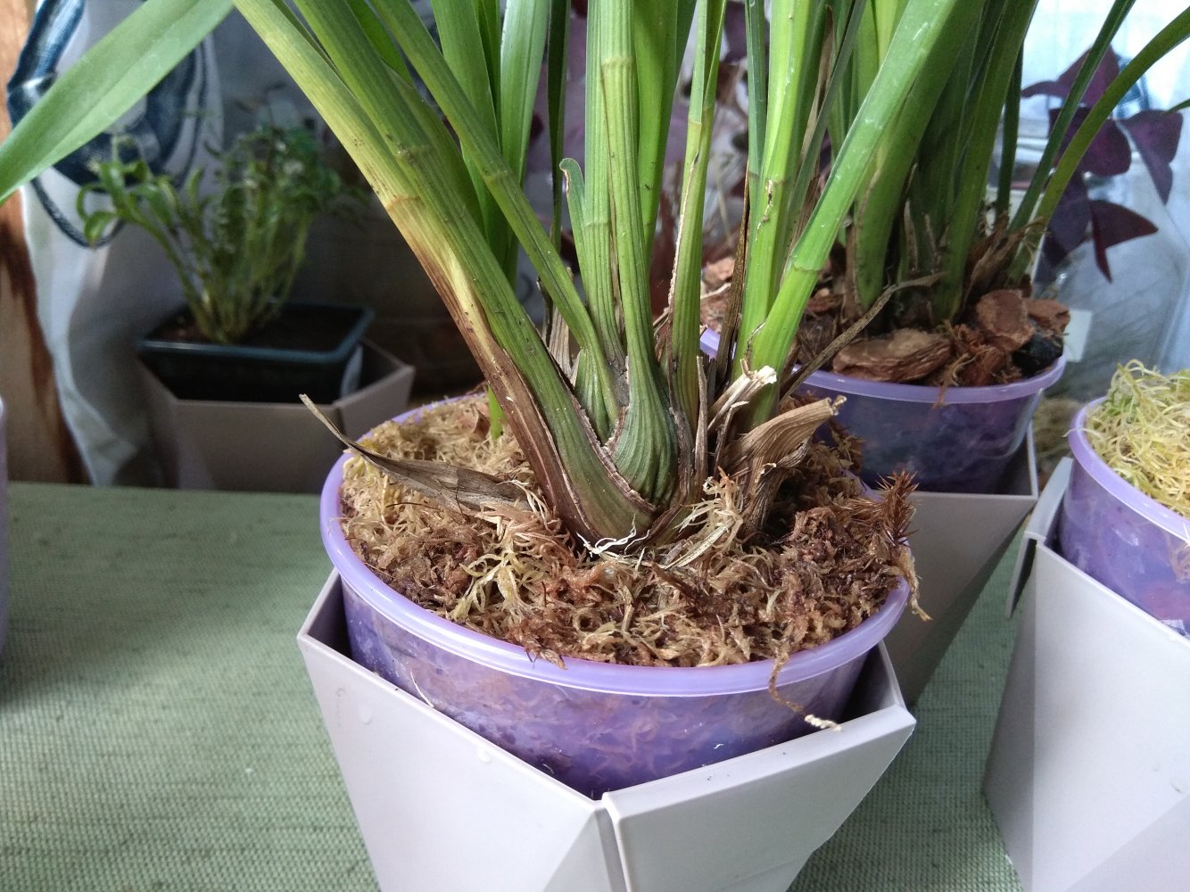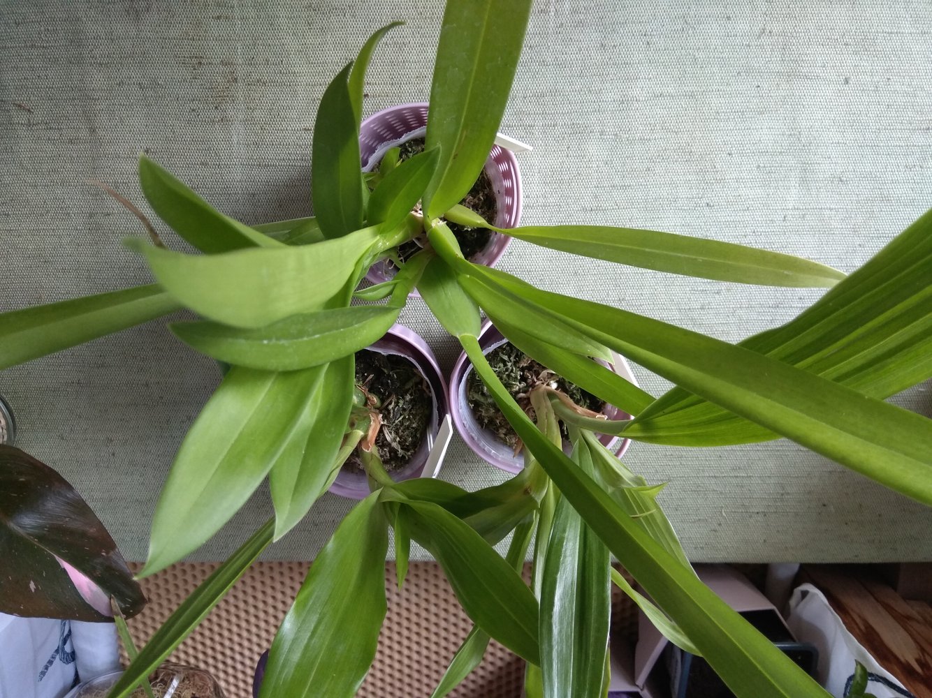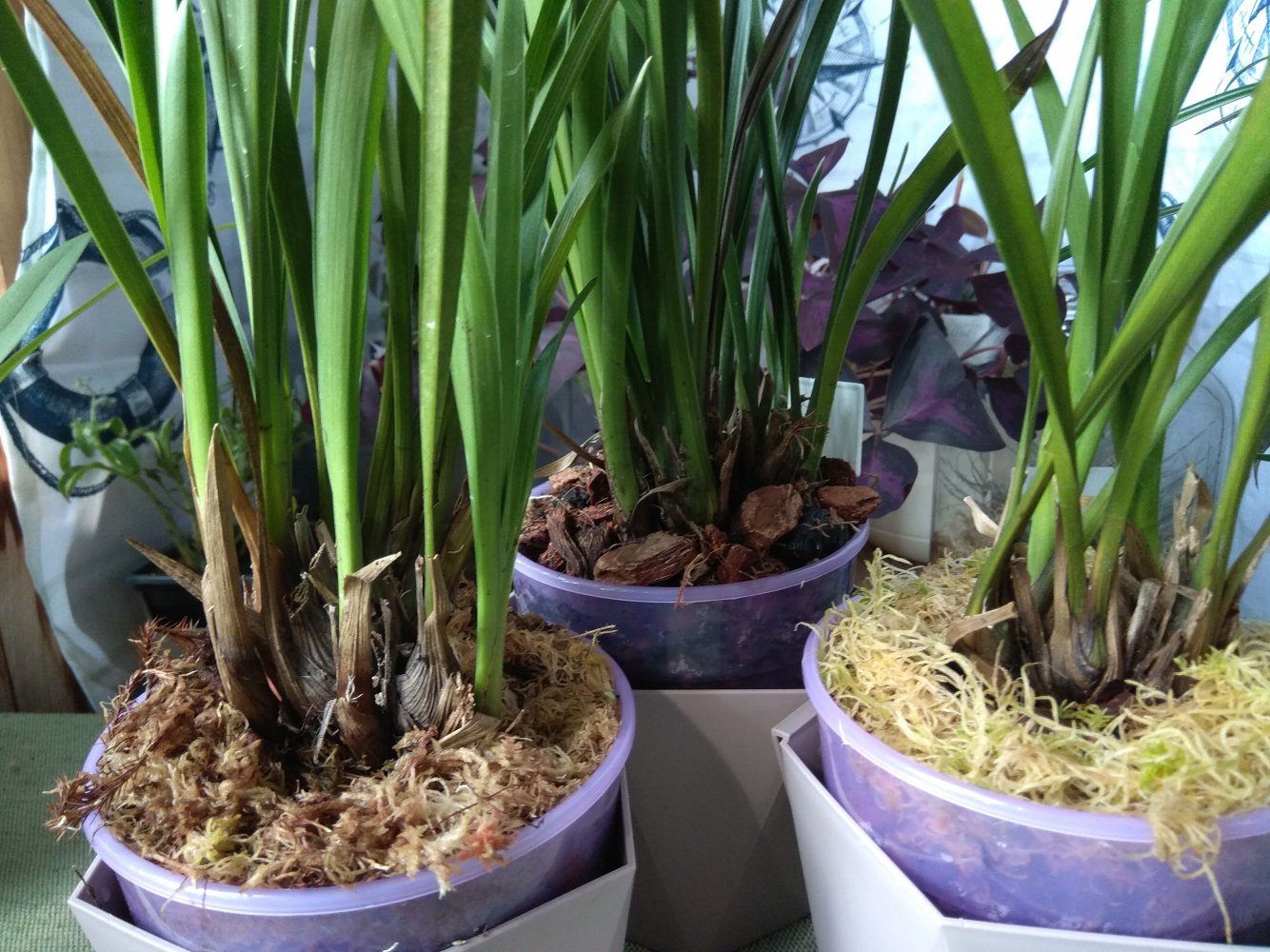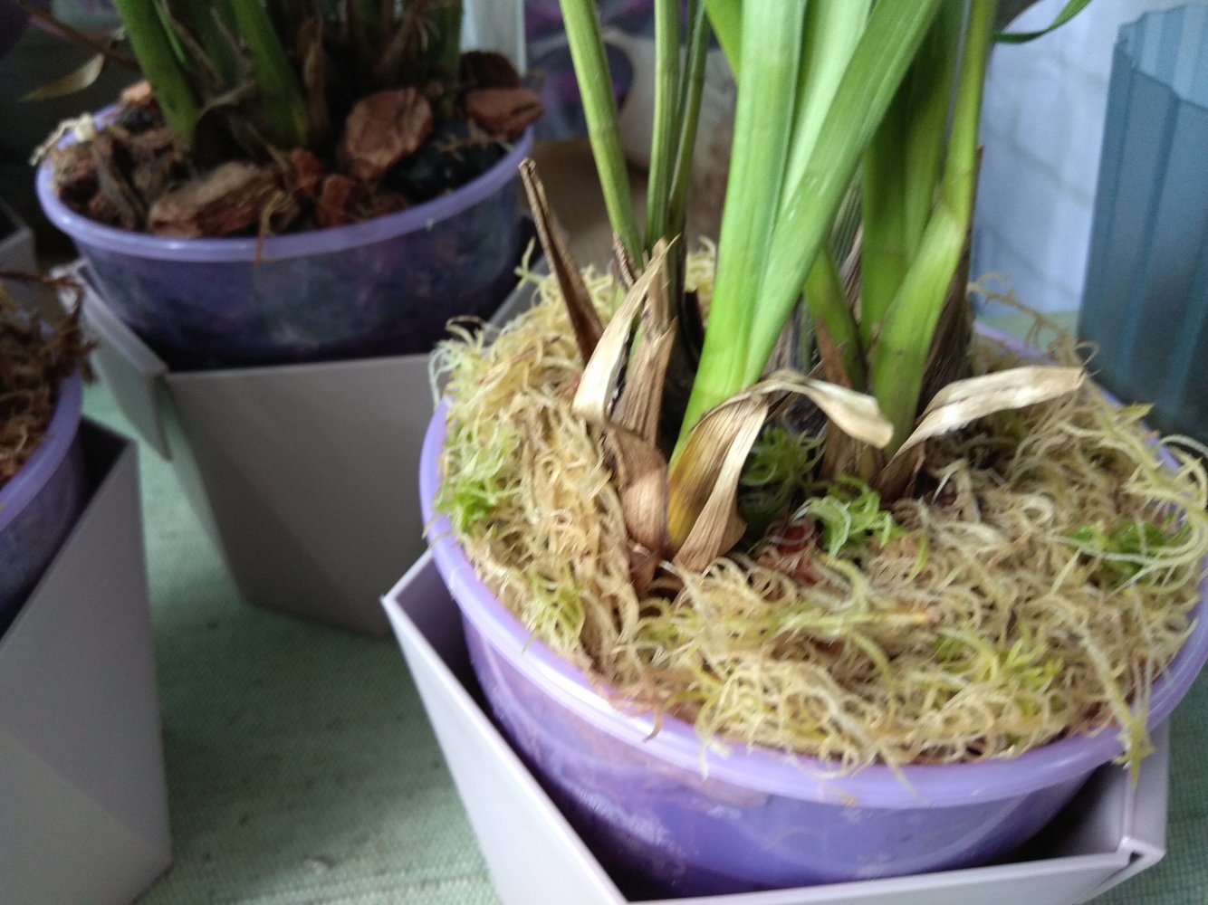 А это моё "трио из вёдер с щебнем", Золотой эльф в центре, 2 других - замены. Когда я получила первого, то подумала, что это дендрохилум Хавьера, а сейчас я уже не так уверена в том, что это не цимбидиумы: