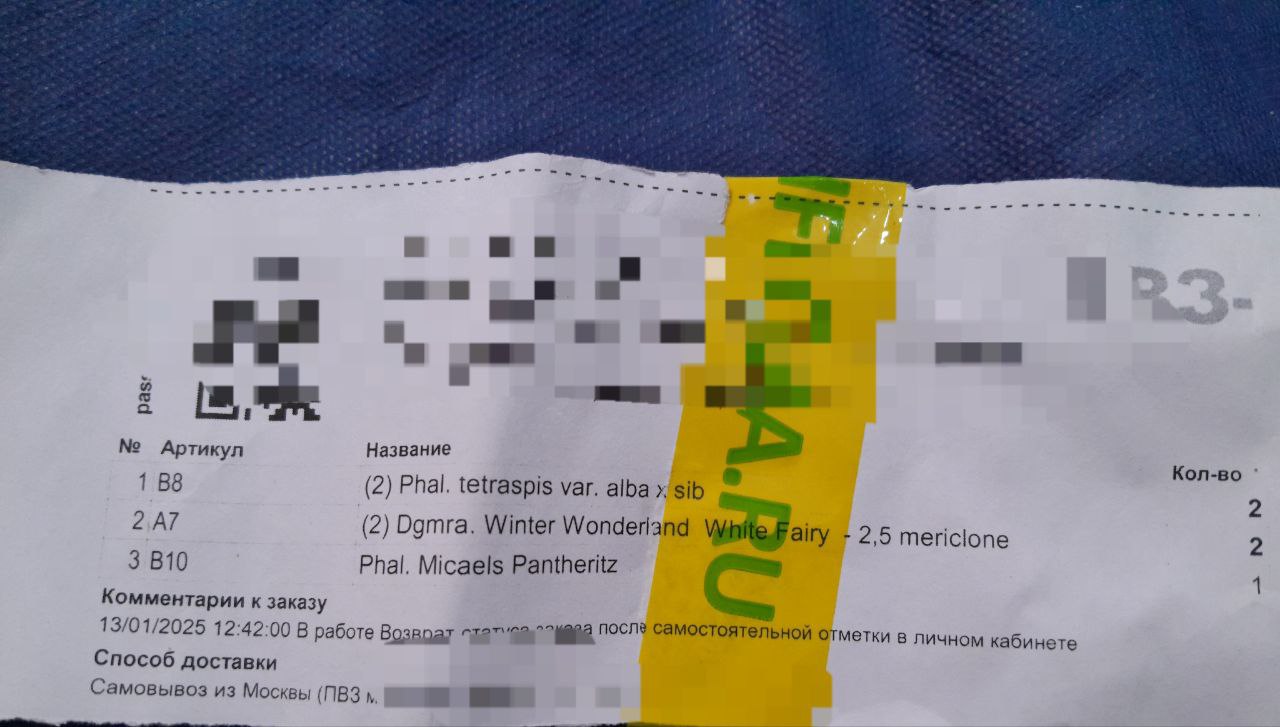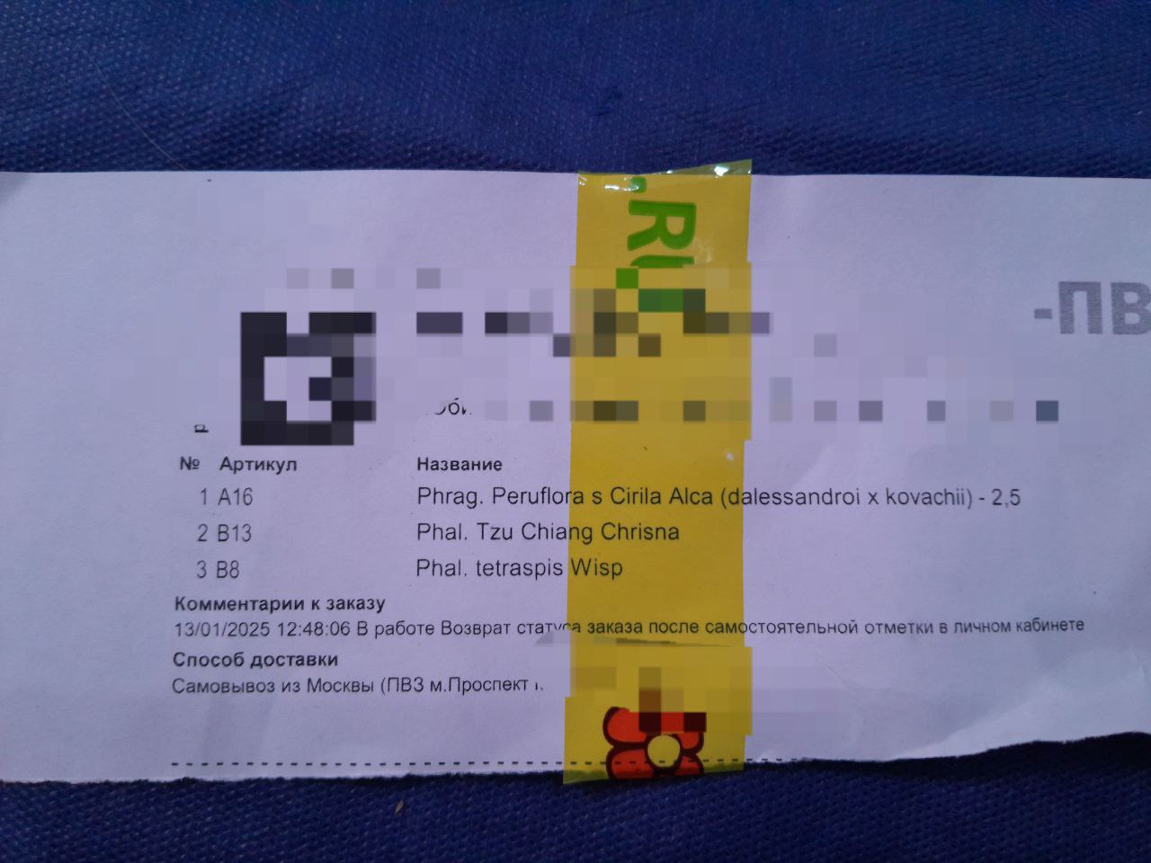 Один замена (Phal. Lius Berry Trinity), так как заказан до обновления каталога, после обновления из каталога пропал. Пришел с бутонами на цветоносе, бережно упакованными в вату.