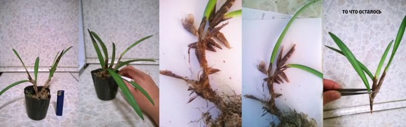 Всю черноту срезала. Шейка вроде нормальная. Три живых корешка - столько и было всего.