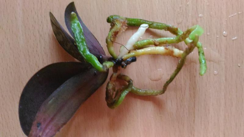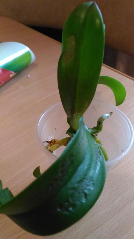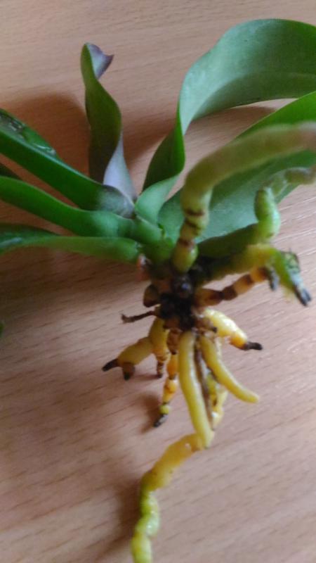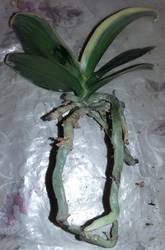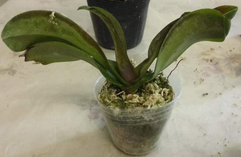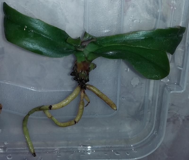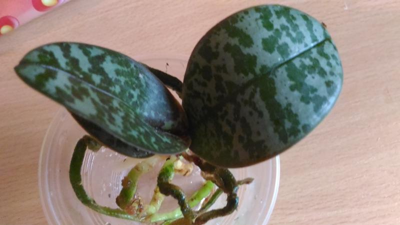 P.parishii малыш конечно в плаченом состоянии. Уж очень он маленький и дорога ему далась тяжело. Половина корней пустые, видимо были сгнившие, потом высохли. Но есть и целые. Потерян тургор листьев. Но надежды выходить не теряю. Думаю, очухается.