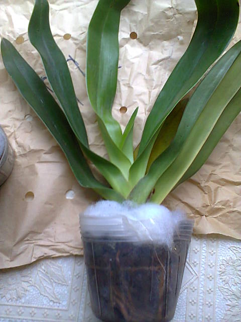 P.Orchid.World был посажен в мох, тургор не потерян, растут новые корешки. Даже за время путешествие фаленопсис отрастил часть листочка. Гнилых корней нет, есть пара высохших, что вообще норма. Полный горшочек здоровых корней. У фалика растет пятый листик, длина самого большого листа 120см. Очень доволен растением.