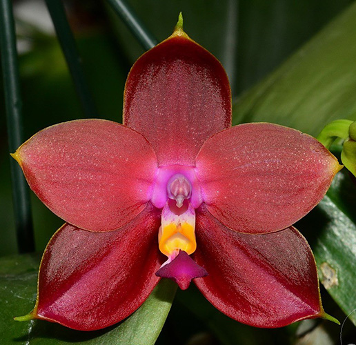 Здесь мы снова имеем уже зарегистрированный (с пылу с жару, буквально месяц назад!) гибрид. У него супер-величественное название - Phal. Mituo King Star (LD's Bear King x Fushang's Beauty Star) Один из последних "бутиковых" новелти от Миту. Зарегистрирован им же. Миту всегда использует для гибридизации не просто отборные сорта растений, но сорта, которые на его взгляд наилучшим образом сочетаются друг с другом. Здесь нужен тонкий вкус и талант. В этом конкретном кроссе (код AM255) Миту задействовал сорт "короля" 'RK-3'. Вообще, LD's Bear King 'RK-3' (aka Ben Belton) - на мой взгляд, самый изысканный и благородный сорт всей линейки "королей". И самый красный. Ну, это всё на вкус, конечно. Только полюбуйтесь на красавца, вернее красавицу, она же вроде бы как мама в этом кроссе, хоть и King )))) :