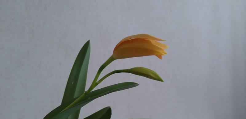 C.neokantskyi x jongheana. Идеальное растение приехало, здоровое, без единого пятнышка. Моей вины в цветении нет - в ходе узи с фонарём обнаружила внутри нового роста нечто, ну а дальше как в анекдоте "накорми собак и руками ничего не трогай". И все же каттлея у меня цветёт впервые, а потому праздную:025: Цветом напоминает мякоть манго, развивается стремительно. ещё пару часов назад бутон был плотно сомкнут, так что наверное вечером уже забуяет)))