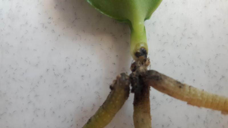 Den.Formidible вызывает вопросы, как и писала. В месте поражения бульба у меня таки развалилась на 2 части. Макушка дальше по стволу была тоже пораженной. Больное вырезала, положила в тепличку. От самого растения удалила остатки больной бульбы, там были корни живые. В результате теперь у меня 3 куска Den.Formidible, что-то, надеюсь, выживет. Пока у основного кустика шансы приличные