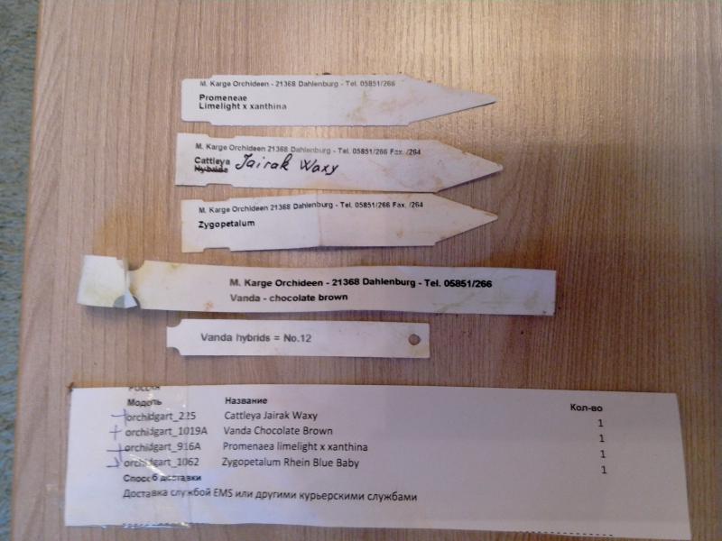 Зиг цветущий - явный пересорт. А по остальным - буду ждать цветения. На бирке у каттлеи исправления. У ванды 2-е бирки - какая из них верная - не известно. Променея - от европейского поставщика хотелось бы получше качество.