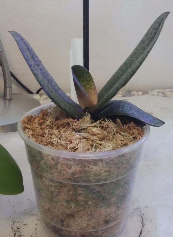 Phalaenopsis schilleriana x cassandra - малышка с упругими листиками в слегка влажном мхе, пока без цветоноса. Корней много, растут новые.